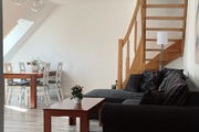 We offer for sale a very nice two-level apartment with slants, the usable area is 65.3 m2, while the floor area is 102 m2. On the first level of the apartment there are: living room, bedroom, kitchen, hall and bathroom with toilet, on the second level there is a room. The rooms have laminated floors, the walls are smoothed and painted. The kitchen is connected to the living room, there is a terracotta floor in the kitchen area, a bathroom with a toilet in modern tiles and terracotta tiles. The apartment has roof windows. The apartment creates a very pleasant atmosphere. The apartment includes a cellar. The offer is recommendable due to the location and standard of finish. The manager of the building is the "Odra" Housing Cooperative in Police. The apartment is in a very attractive location (LIDL, Netto, Rossmann, Avans, bus stop, three petrol stations. 15 minutes to Szczecin by car). Price still negotiable. We cordially invite you to the presentation.