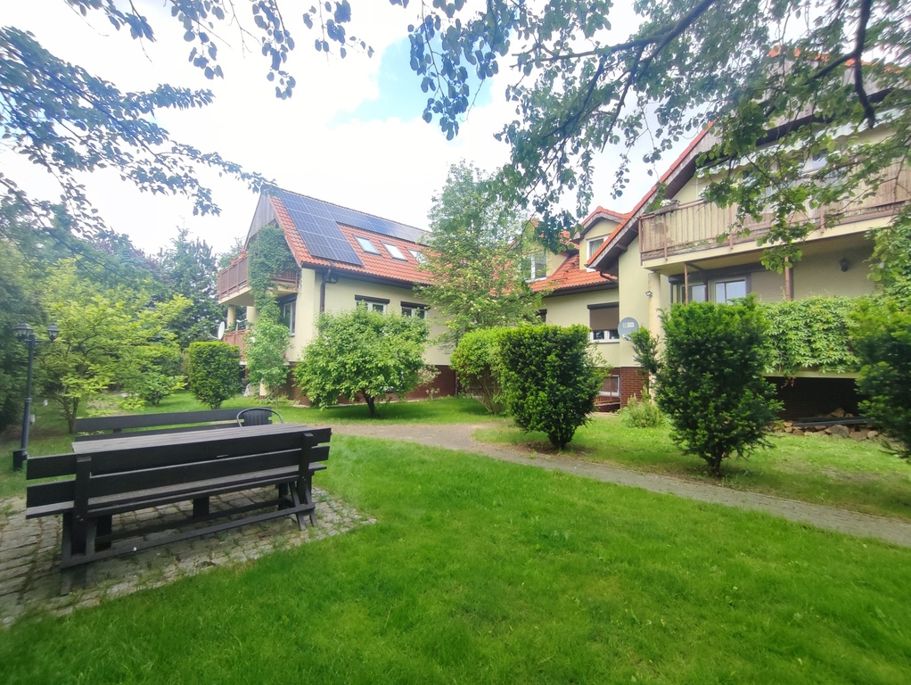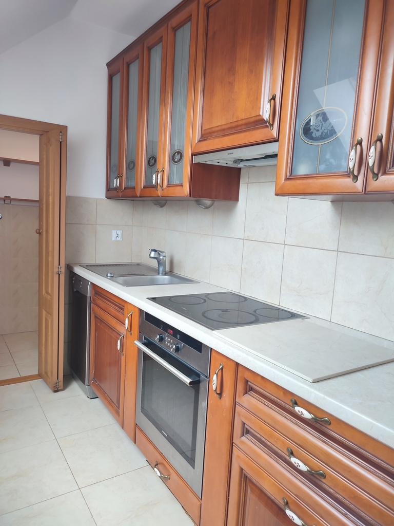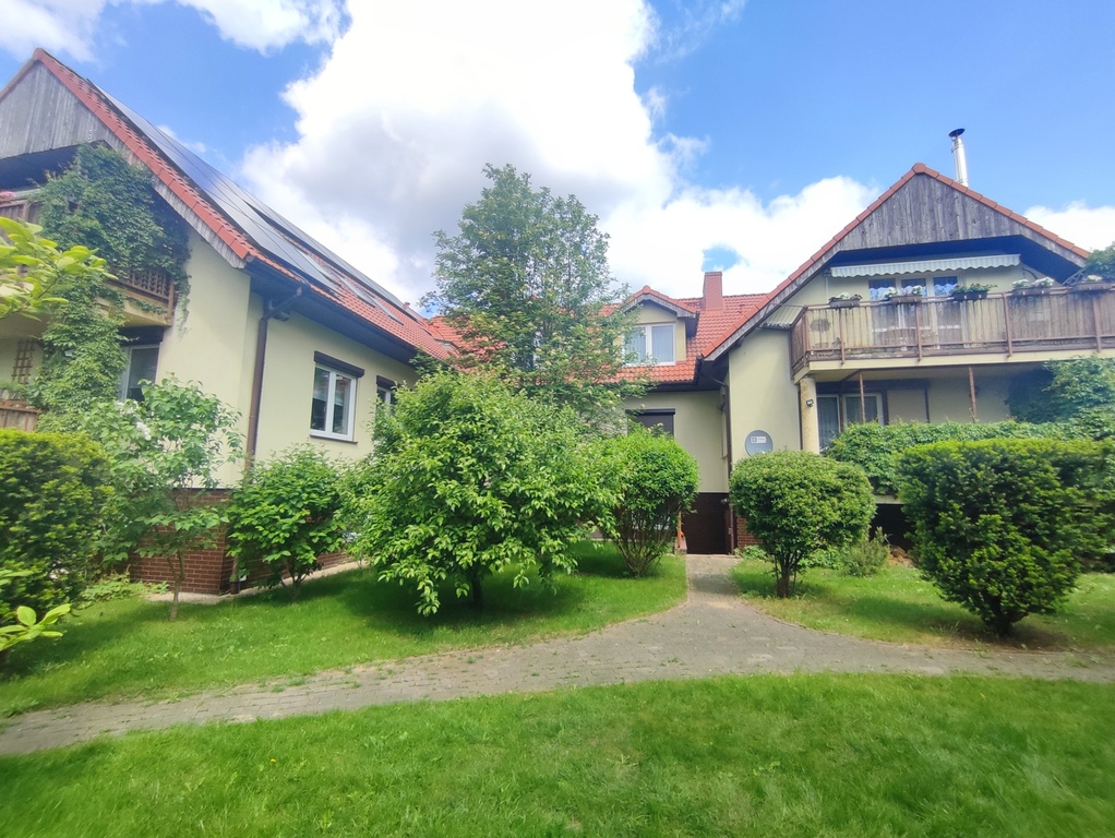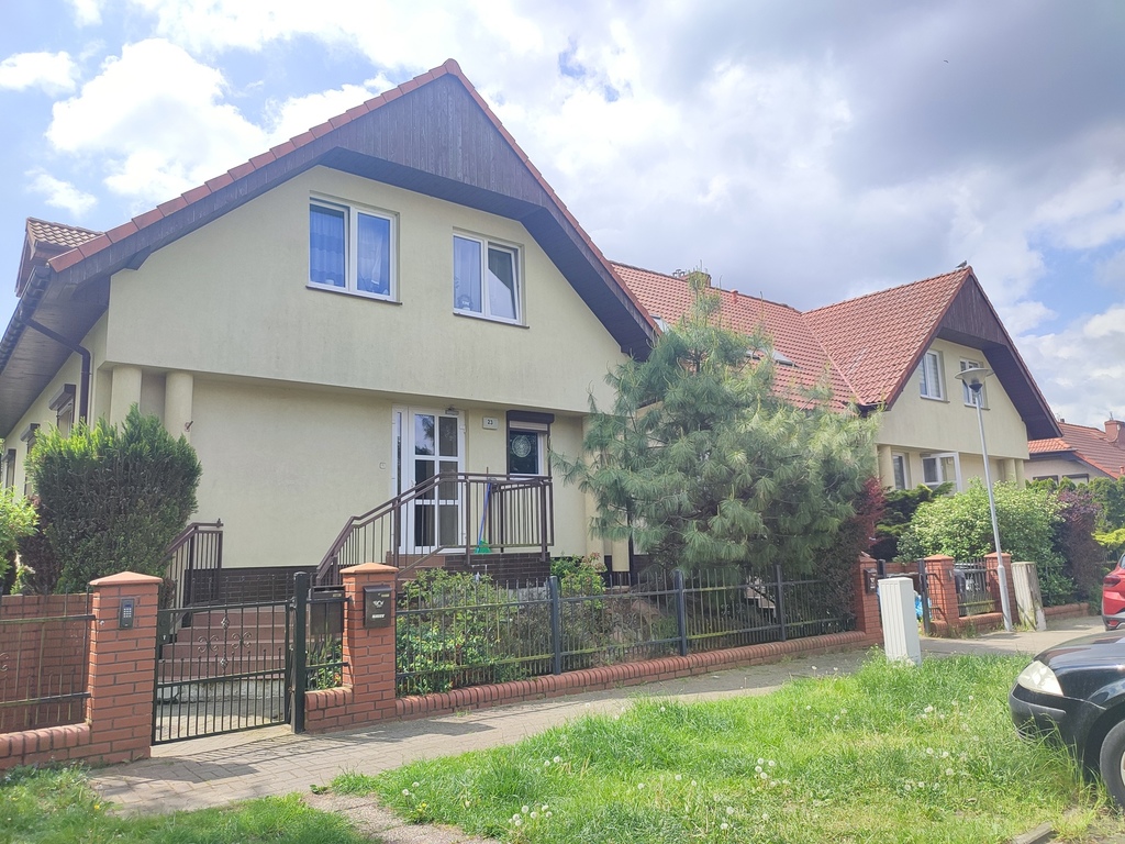 We offer for sale a two-room apartment with a usable area of 60.50 m2 located in one of the prettiest districts of Szczecin – in Warsaw. The location is undoubtedly the biggest asset of the apartment. The property was built in 2006 and is located in a quiet and peaceful street of Tadeusza Wieczorowskiego. There are only eight apartments in the entire building. The entire property is fenced and all residents of the building share a beautifully landscaped garden located at the back of the property – ideal for summer barbecues. The apartment is offered for sale together with a cellar with an area of 6.80 m2 (basement included in the price of the apartment – on the same land and mortgage register) and with an underground parking space located under the apartment on the garage level (parking space additionally payable in the amount of PLN 35,000 – on a separate land and mortgage register, but the purchase is obligatory). The apartment is a duplex. The first level (ground floor) is a hall (with a window) in which there is a two-piece Commander wardrobe with mirrored fronts and additional cabinets (including for shoes). A comfortable concrete staircase with steps finished with a dark board leads to the second level (first floor). Upstairs there is a large living room, a bedroom with another four-part wardrobe, a separate kitchen with a window, a bathroom with a toilet, a separate laundry room (entrance from the kitchen) and another hall. The apartment is maintained to a good standard and only requires refreshing (e.g. sanding the floors and painting the walls). In the lounge area of the living room, in the bedroom and in the upper hall – parquet on the floor. In the dining area of the living room – panels on the floor. In the kitchen, tiles on the floor plus an apron of glaze between the furniture on the wall. The price includes full kitchen furniture with household appliances (min. dishwasher, oven, electric hob and hood). The bathroom has glazed tiles and terracotta in light shades, plus a large, comfortable shower, a washbasin on a leg, a toilet bowl, a bidet and a ladder radiator. The bathroom is large and spacious. An additional (closed) room is the laundry room located directly behind the kitchen. In the laundry room, half of the walls are tiled, plus terracotta on the floor. The apartment is very bright. From the side of the inner street in the apartment, roof windows (two in the dining area of the living room, one in the kitchen and one in the hall on the ground floor), and from the side of the garden accessible to the residents of the building – vertical PVC windows (one two-piece in the living room and one two-piece in the bedroom). Very low maintenance costs. Rent to the housing community at PLN 230 (including rent PLN 150 plus renovation fund PLN 80). Additional charges for water, electricity and gas. Heating and hot water – second-circuit gas stove located in the bathroom. The property is just a 5-minute walk from Duńska Street, where there are numerous shops (including Netto and Żabka), a restaurant, a pharmacy, a medical clinic and public transport stops (bus lines). The offer is addressed to people who, instead of the hustle and bustle of the street, prefer to wake up to the singing of birds sitting in the trees in the garden. We cordially invite you to see the apartment!!!