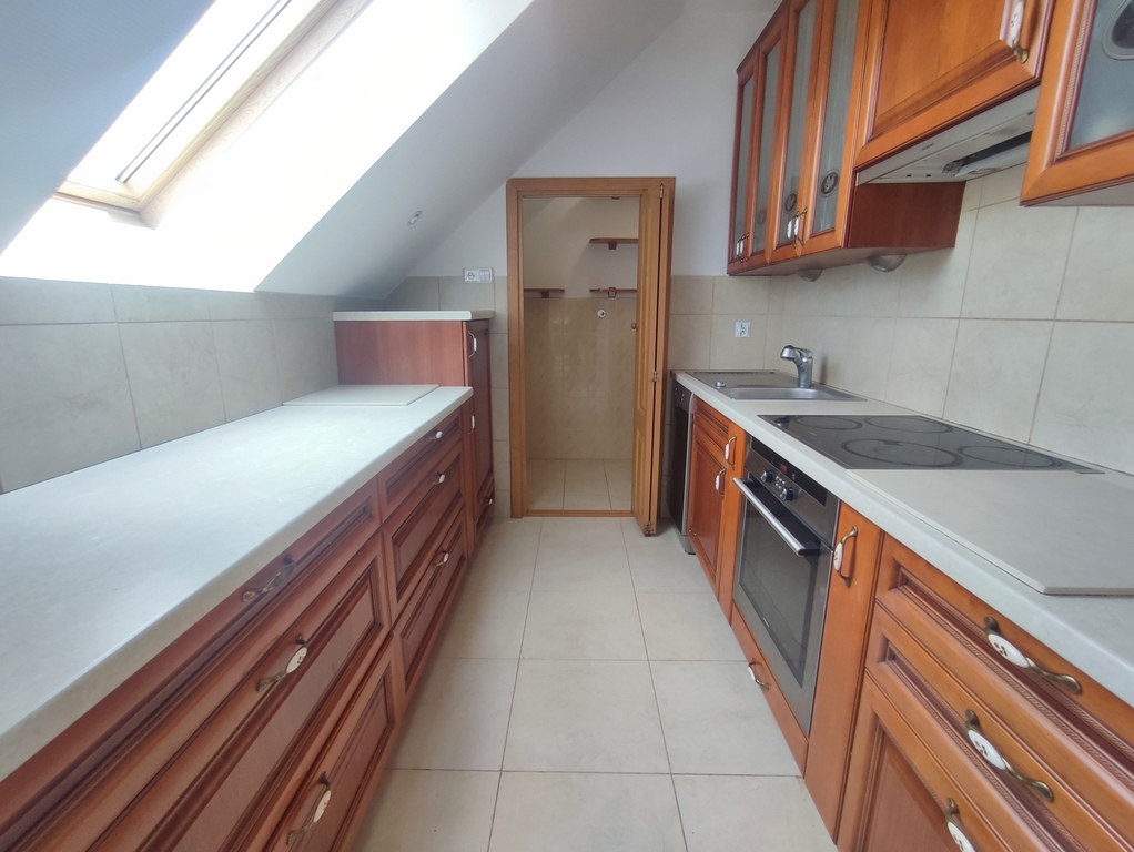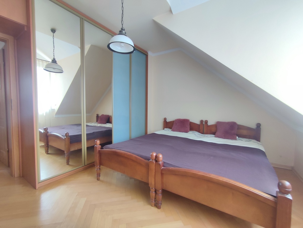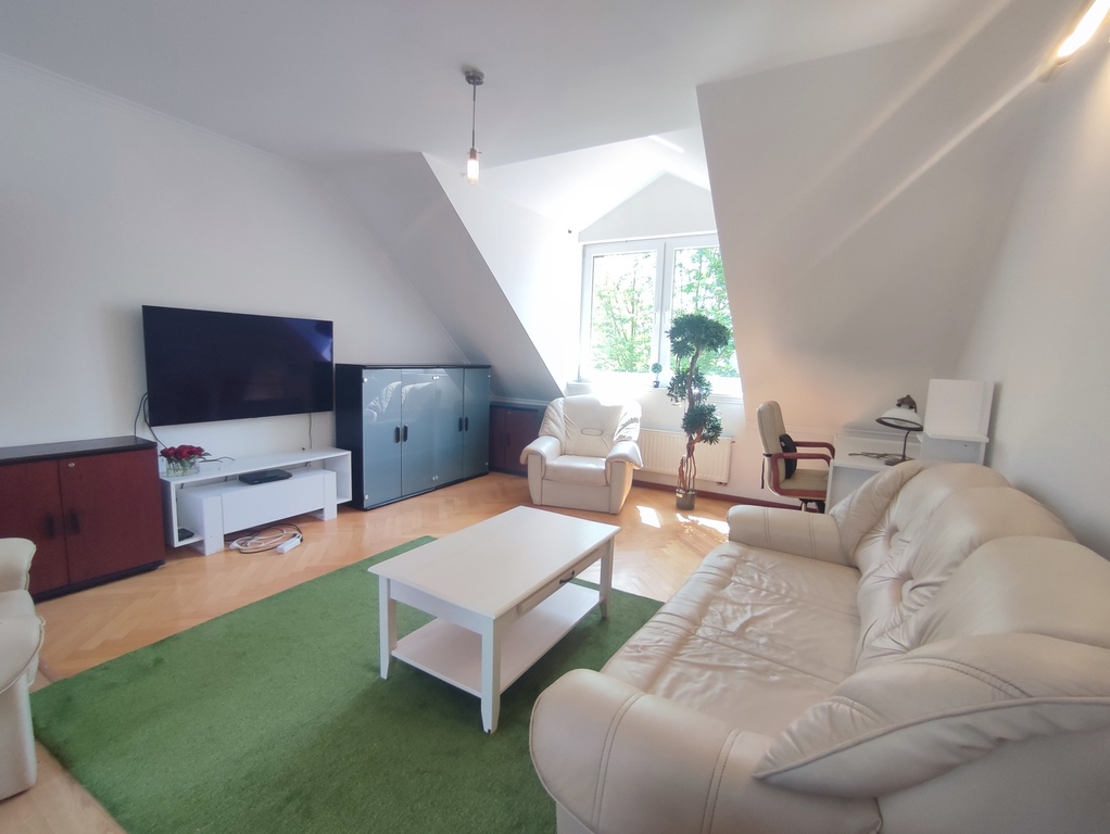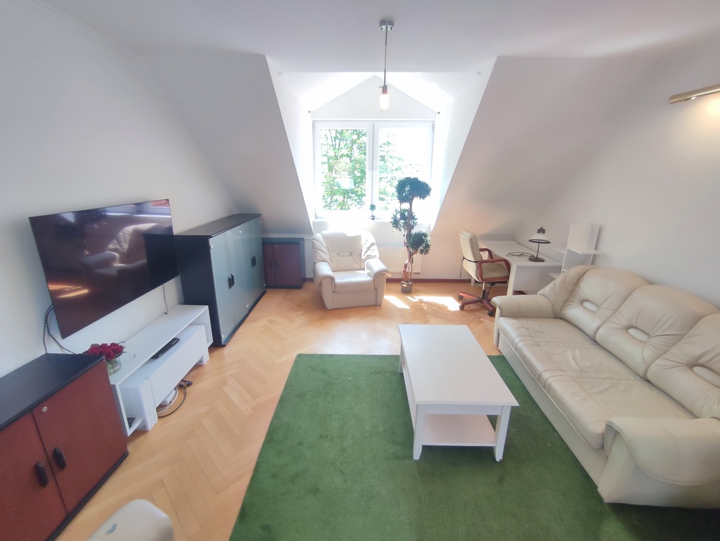 We offer for sale a two-room apartment with a usable area of 60.50 m2 located in one of the prettiest districts of Szczecin – in Warsaw. The location is undoubtedly the biggest asset of the apartment. The property was built in 2006 and is located in a quiet and peaceful street of Tadeusza Wieczorowskiego. There are only eight apartments in the entire building. The entire property is fenced and all residents of the building share a beautifully landscaped garden located at the back of the property – ideal for summer barbecues. The apartment is offered for sale together with a cellar with an area of 6.80 m2 (basement included in the price of the apartment – on the same land and mortgage register) and with an underground parking space located under the apartment on the garage level (parking space additionally payable in the amount of PLN 35,000 – on a separate land and mortgage register, but the purchase is obligatory). The apartment is a duplex. The first level (ground floor) is a hall (with a window) in which there is a two-piece Commander wardrobe with mirrored fronts and additional cabinets (including for shoes). A comfortable concrete staircase with steps finished with a dark board leads to the second level (first floor). Upstairs there is a large living room, a bedroom with another four-part wardrobe, a separate kitchen with a window, a bathroom with a toilet, a separate laundry room (entrance from the kitchen) and another hall. The apartment is maintained to a good standard and only requires refreshing (e.g. sanding the floors and painting the walls). In the lounge area of the living room, in the bedroom and in the upper hall – parquet on the floor. In the dining area of the living room – panels on the floor. In the kitchen, tiles on the floor plus an apron of glaze between the furniture on the wall. The price includes full kitchen furniture with household appliances (min. dishwasher, oven, electric hob and hood). The bathroom has glazed tiles and terracotta in light shades, plus a large, comfortable shower, a washbasin on a leg, a toilet bowl, a bidet and a ladder radiator. The bathroom is large and spacious. An additional (closed) room is the laundry room located directly behind the kitchen. In the laundry room, half of the walls are tiled, plus terracotta on the floor. The apartment is very bright. From the side of the inner street in the apartment, roof windows (two in the dining area of the living room, one in the kitchen and one in the hall on the ground floor), and from the side of the garden accessible to the residents of the building – vertical PVC windows (one two-piece in the living room and one two-piece in the bedroom). Very low maintenance costs. Rent to the housing community at PLN 230 (including rent PLN 150 plus renovation fund PLN 80). Additional charges for water, electricity and gas. Heating and hot water – second-circuit gas stove located in the bathroom. The property is just a 5-minute walk from Duńska Street, where there are numerous shops (including Netto and Żabka), a restaurant, a pharmacy, a medical clinic and public transport stops (bus lines). The offer is addressed to people who, instead of the hustle and bustle of the street, prefer to wake up to the singing of birds sitting in the trees in the garden. We cordially invite you to see the apartment!!!