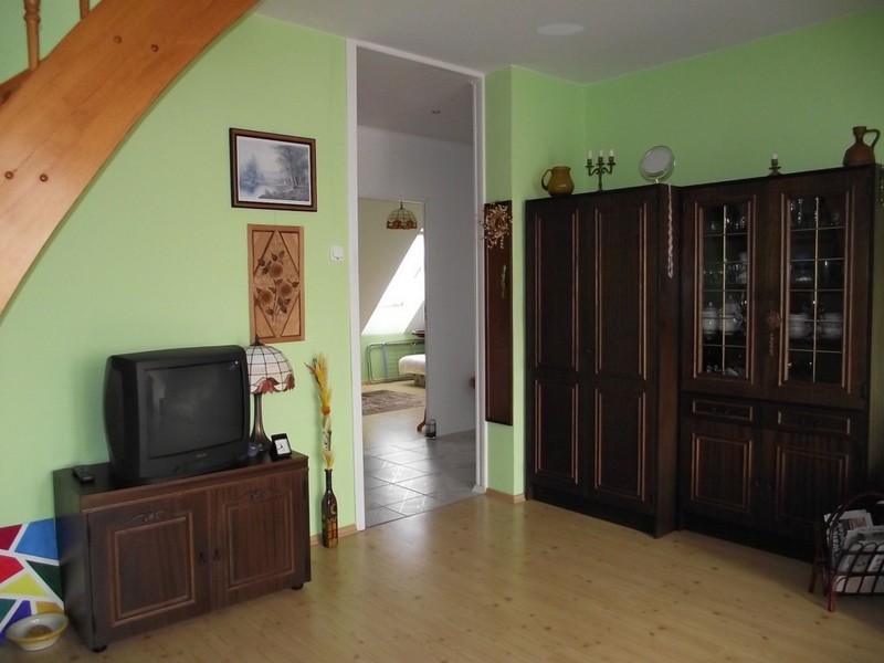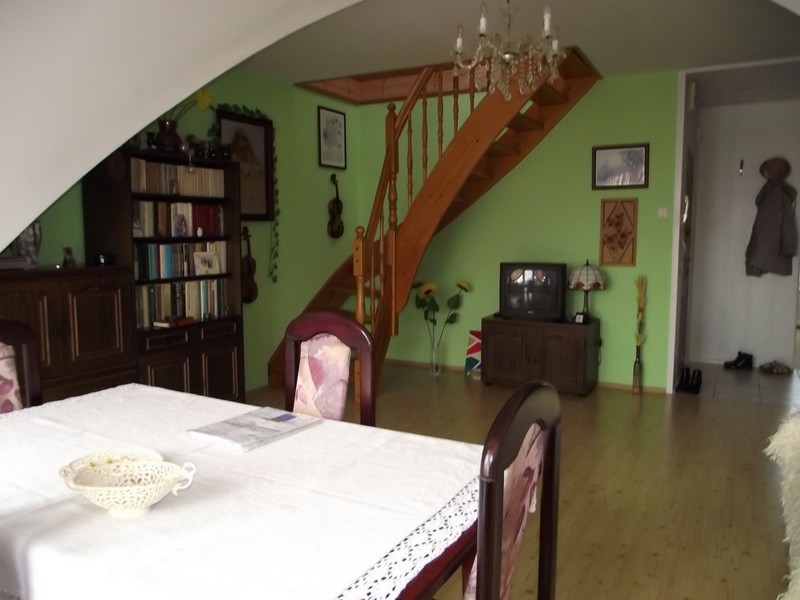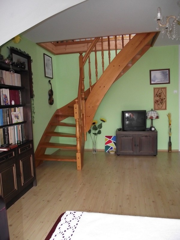 Przecław. A two-level apartment located on the 3rd floor of a low-rise building from 1998. On the first level, a living room with an area of about 22 m2, a kitchen with a window, a bedroom of 14 m2 with a slight slant and a bathroom with a bathtub, toilet and washbasin finished with tiles and terracotta. Wooden stairs in a light structure leading to the second level, which is a climatic open space with an area of about 33 m2 with skylight windows / unfurnished attic /. Panels on the floors, only in the kitchen, hallway and bathroom tiles. Painted plaster on the walls. The total area of the apartment is 80 m2, the usable area is 47 m2. Heating and hot water from a dual-function gas stove, the rent to the cooperative is PLN 400 / month. The apartment includes a cellar. For an additional fee of PLN 70,000, you can purchase a garage under the building with an area of 19.4 m2. Excellent location, close to school, post office, shops and other public facilities, close to public transport. A cooperative owner-occupied apartment, also available for foreigners without the need to obtain a permit. I recommend.