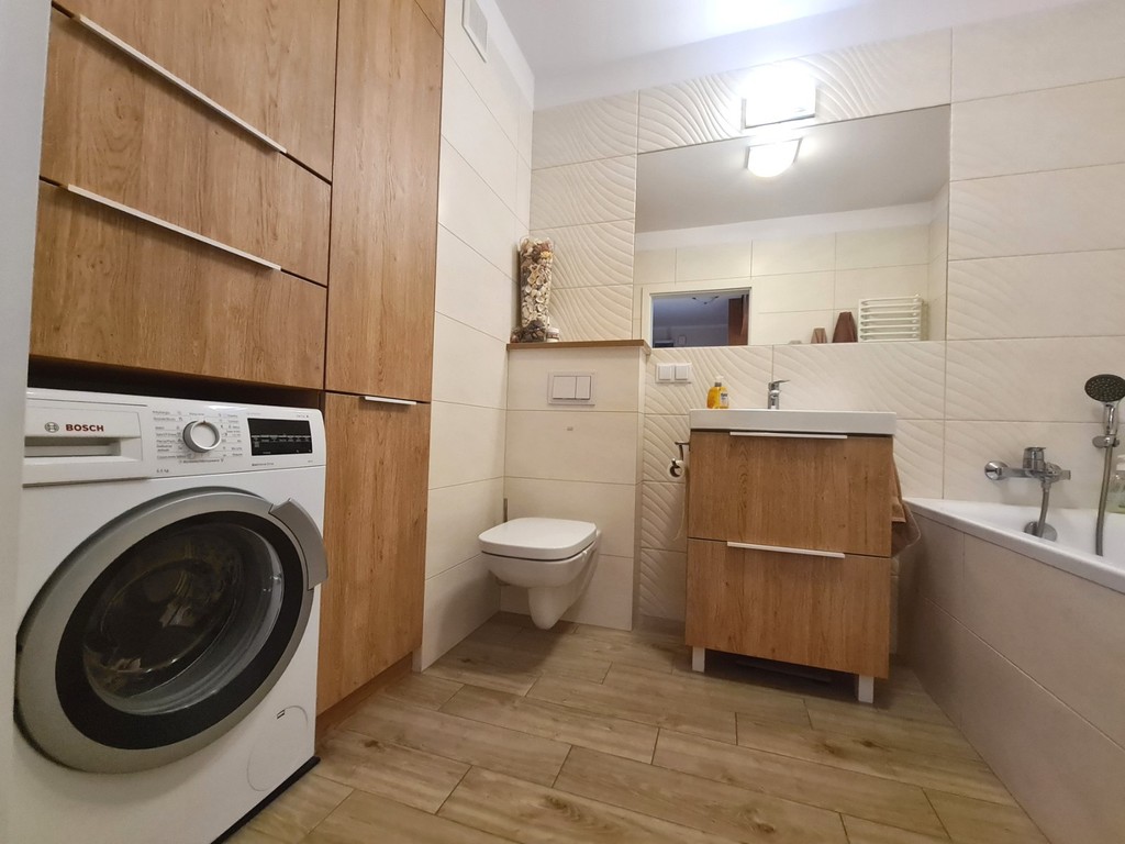 A very nice and well-kept two-room apartment on the first floor of a three-story block. Located in a very nice part of Police at Piaskowa Street. The area of 51.7 m2 consists of: a hall, a kitchen, a room, a bathroom with a toilet and a living room with access to a large balcony. Heating and hot water from the municipal network. The price includes wardrobes in the hall, bathroom furniture and built-in kitchen furniture with an electric cooker. The apartment includes a cellar. The rent (for four people) is about PLN 700-800 + electricity according to consumption (there is no gas). The apartment is nice and well-maintained – ready to move in and worth attention, exceptionally well-arranged and spacious rooms. An ideal place for families who value peace and quiet. Plenty of parking spaces in the estate. Exclusive offer. I invite you to the presentation