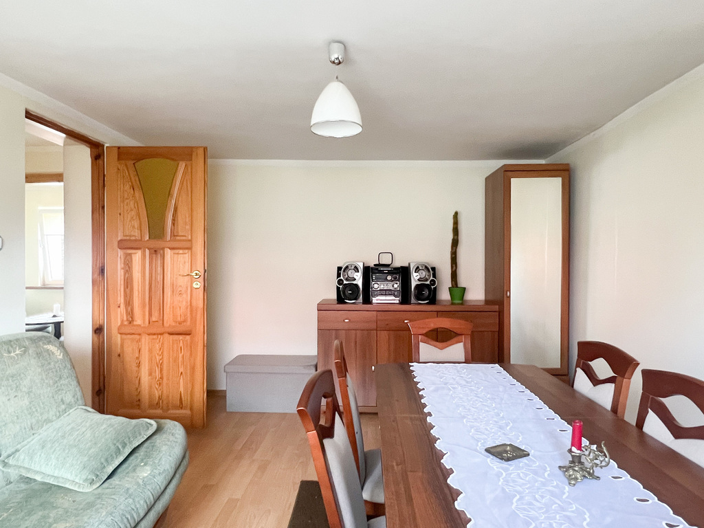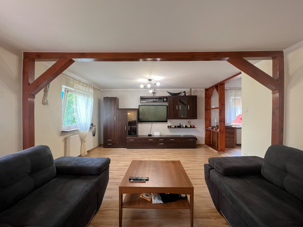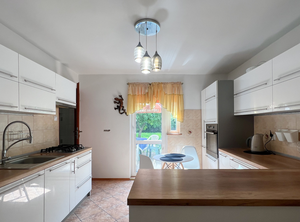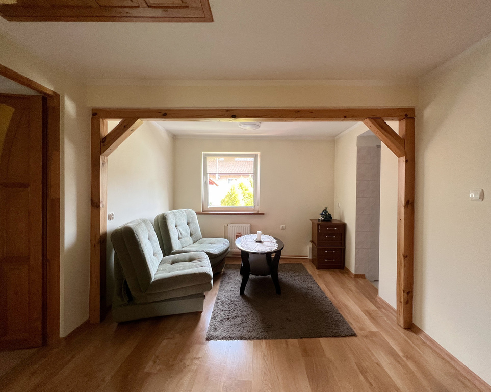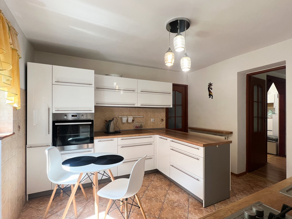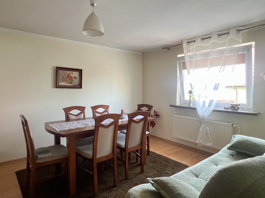 For sale! Offer of a single-family house with a garden in Goleniów. Very good location of the house, in a housing estate in a quiet and peaceful area. Total area: 123.53 Plot area: 731 m2 Ground floor: – 3 rooms, – kitchen, – bathroom, – hall. First floor: – 2 rooms, – kitchen, – bathroom, – hall, – terrace. A great advantage is the possibility of separating a separate apartment with an area of 32.5 m2 on the first floor of the house with a built-in wooden terrace. Utilities: – electricity, – municipal sewage system, – gas heating. Large trees in the garden: walnut, cherry and apple tree giving a beautiful shade in the garden. Garage, and utility rooms. Offer price: PLN 690,000 We invite you to the presentation!
