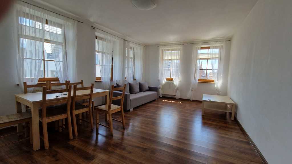 Podzamcze, a 4-room apartment with a total area of 137 m2, located on the third floor of a tenement house from 2012. The apartment consists of three levels. First level: living room, separate kitchen, bathroom with bathtub. Second level: two bedrooms, bathroom with shower. Third level: bedroom (space with slants). Heating and hot water from the municipal network (SEC). Air conditioning on all levels. The rental price is PLN 500, plus meter charges (electricity, hot and cold water) and administrative rent PLN 400. Deposit required. An apartment with a view of the old town and the Odra boulevards.