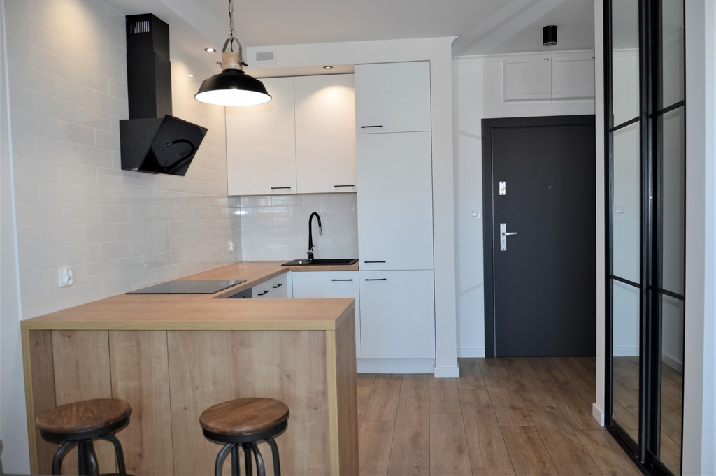 A comfortable 2-room apartment for rent in a modern apartment building – at ul. Strzelecka in Szczecin. The building is equipped with two silent elevators, the facility is monitored. The offered apartment is located on the 3rd floor and has an area of 37.42 m 2 – which consists of a living room with a kitchenette (exit to the balcony), a bedroom, a hall, a bathroom with a toilet. The apartment is finished to a high standard, all rooms in the apartment from the living room to the bedroom and ending with the bathroom are kept in a Scandinavian style. In the part of the kitchenette, furniture with complete equipment (dishwasher, dishes, pots, etc.), the kitchen is separated from the living room by a functional bar, in this room there is also a wardrobe with mirrors. In the part of the room – a sofa (fold-out), a chest of drawers, a TV set, a coffee table. Bedroom comfortable bed (good quality mattress), large built-in wardrobe. Bathroom in tasteful tiles and terracotta with a shower, washing machine. In addition, the owner made sure that the tenants felt comfortable and equipped the apartment with accessories and everyday utensils, such as an iron and ironing board, an electric kettle, a vacuum cleaner. There is a comfortable utility room next to the apartment. The cost of renting PLN 2,500 + rent due to the Administrator and utilities. Deposit PLN 4,000. The apartment is free from August 1, 2023. Smoking is not allowed in the apartment. Offer for people without pets. Lease contract for at least one year, We recommend .