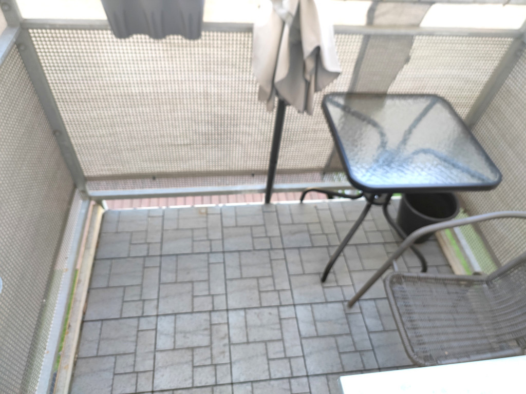 In the bedroom there is a double bed, a low chest of drawers and a “Commander” type wardrobe.