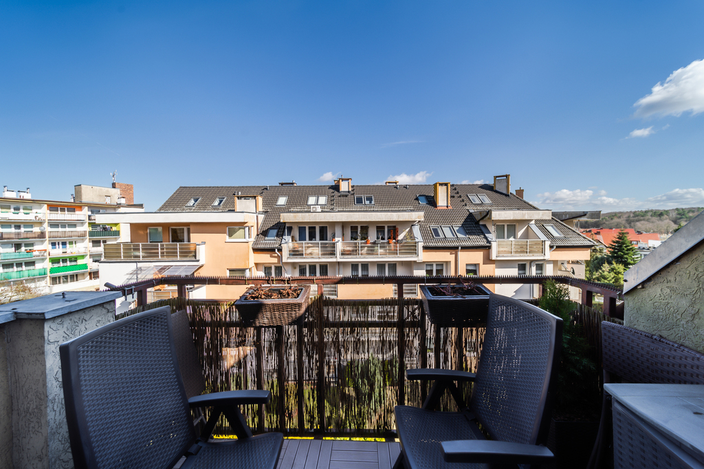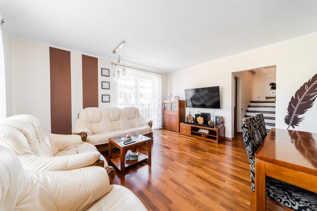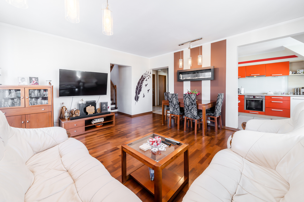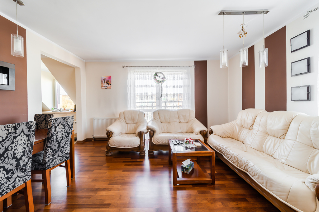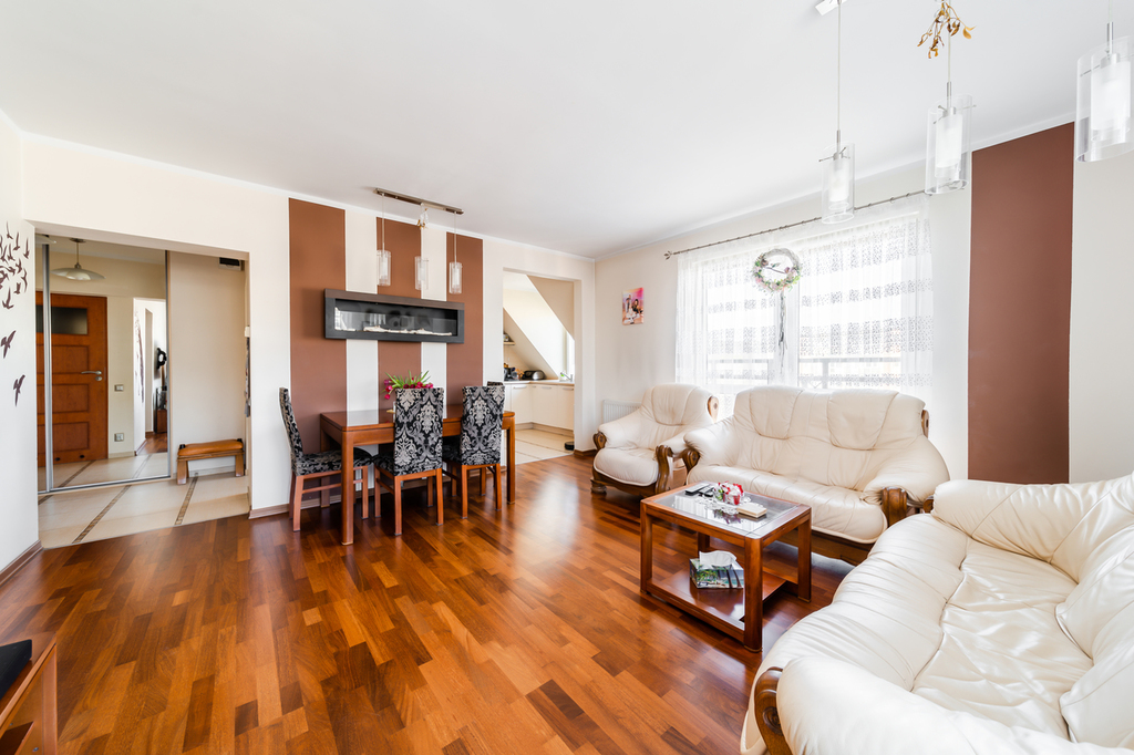 For sale a spacious and equipped duplex apartment with an area of 120 m2 (usable area 111.23 m2), located on the 3rd and 4th floor of a residential building in the Dąbrówka housing estate, in the southern part of Police.