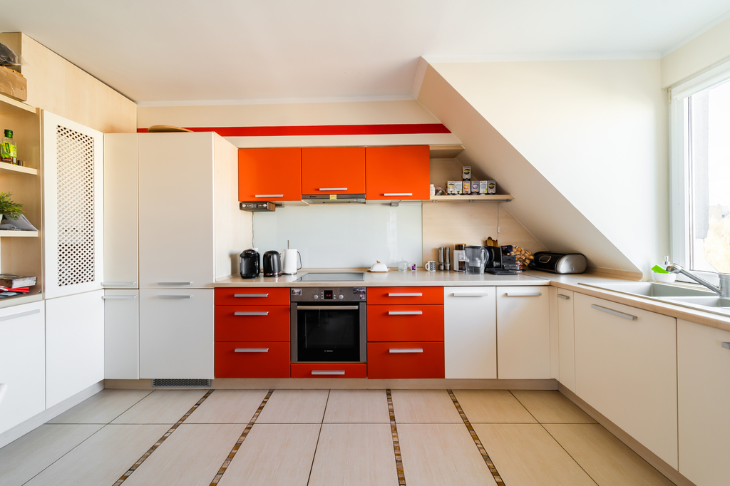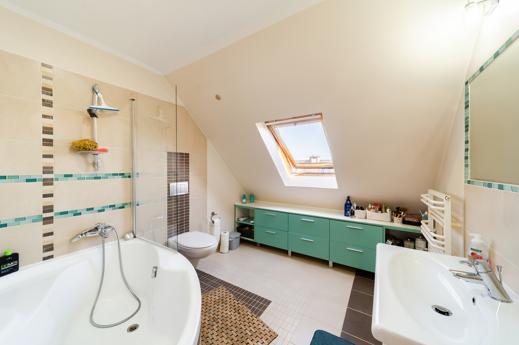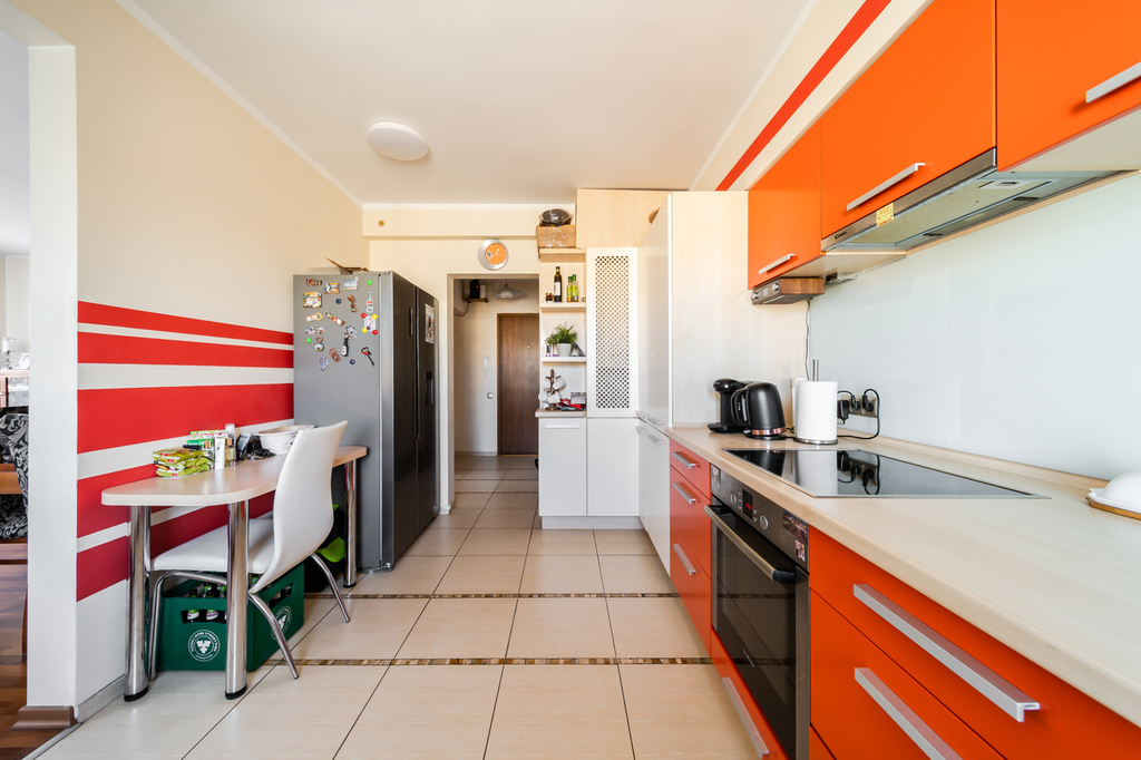 – a large and bright kitchen with appliances (dishwasher, oven, electric hob) and built-in furniture,