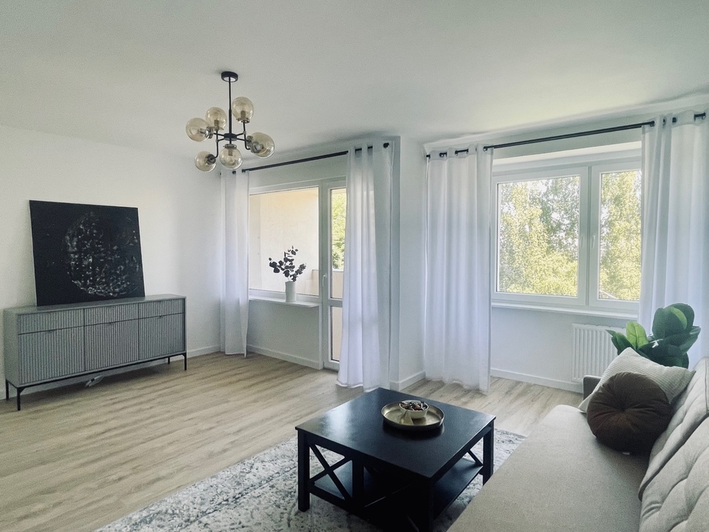 A 2-room flat with an area of 45.28 m2 located on the 2nd floor of a low block from the 70s. The apartment has undergone a general renovation – the electrical installation has been replaced, the walls have been smoothed and painted, new panels have been installed, the bathroom with a shower cabin is beautifully lit, with space for a washing machine. The kitchen is fully equipped with new furniture and household appliances (stove, oven, electric hob, fridge, dishwasher). The apartment is very warm and well lit due to the exposure of the windows to the east and west. Heating and hot water from the municipal network. Fees PLN 490 with the renovation fund, advance payments for utilities. The property is located in one of the best locations due to the rich infrastructure necessary for everyday life. Excellent accessibility of public transport (trams and buses). School, kindergarten, hospital, shops, service points all within easy reach. Public parking under the building.