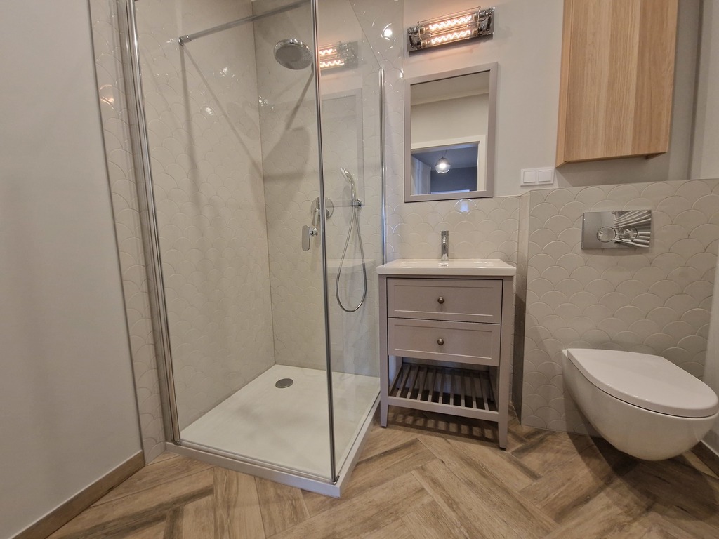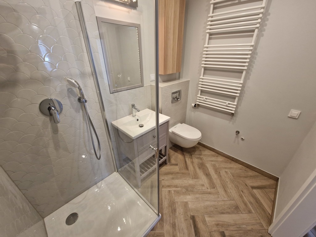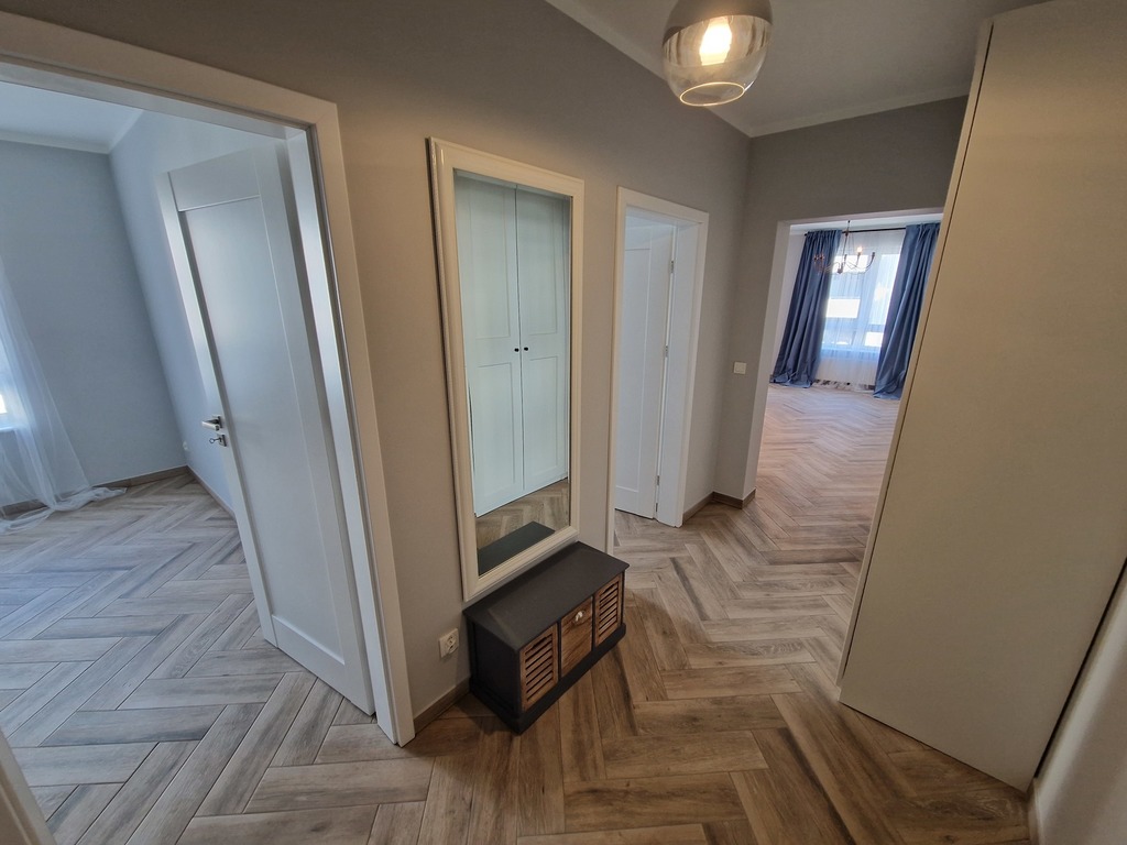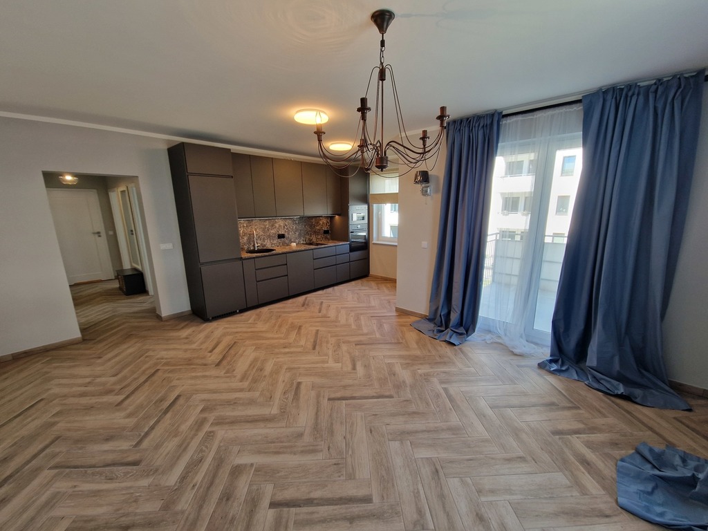 A brand new, uninhabited three-room apartment for rent immediately in Małe Błonia in Warsaw. A highly valued location by the inhabitants of Szczecin due to the proximity to green areas and the high location in relation to the city, and thus fresh air. Buildings built in 2022 have quiet elevators (also to the garage level) and nicely landscaped area. The premises has 58.60 m2 and is located on the 1st floor. The windows overlook the south-west side, thanks to which the apartment is very sunny. The surface of the apartment consists of a large living room with a kitchenette (28 m2) with a completely new kitchen equipped with all household appliances (oven, dishwasher, microwave, fridge – all built-in). From the living room we have access to a very large 10m2 balcony. The bedrooms are 9.20 and 10.30 m2. Bathroom in modern colors with a shower, toilet and washbasin and space for a washing machine with an area of 4.3 m2. All rooms have wood-like tiles on the floor, which makes them very easy to keep clean. Unfurnished rooms with mounted lighting and curtain rods and curtains. Additional fees are: – position in the underground garage PLN 300 – elevator access to the garage – rent to the community (with advance payments for water and garbage for 1 person) – PLN 322 – electricity (we rewrite the contract for the tenant) – sec (heating we rewrite the contract for the tenant) Required deposit PLN 5,000 . There is an option to furnish. Contract for a minimum of one year. We invite and recommend.