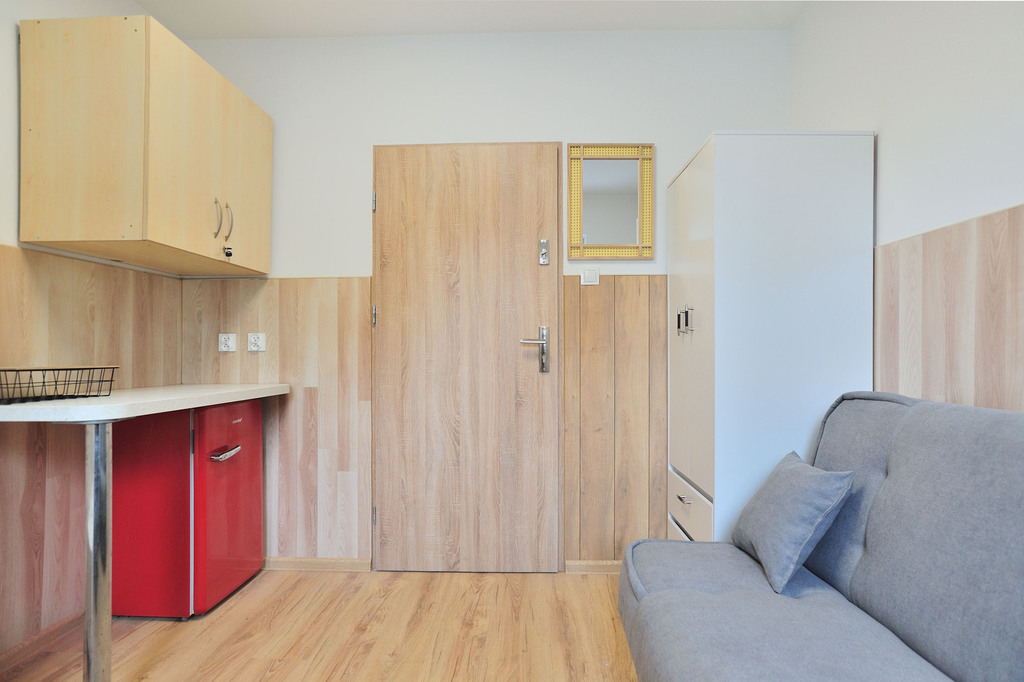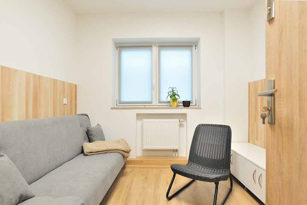 A room for one person or a couple to rent from today. The room has a fold-out sofa, an oblong cupboard, a wardrobe, a hanging cupboard, and a table with a small fridge under it. The tenants have at their disposal a bathroom with a toilet and a shower, as well as a toilet with a sink. The kitchen is fully furnished and equipped with an electric kettle and a gas cooker. The rent for a room is PLN 950 per person, in the case of a couple – PLN 1,100. Additional fees: PLN 300 advance payment for utilities plus electricity fee according to consumption. The apartment has 3 independent rooms. It is located on the ground floor of a 1-story residential and office building located at ul. Rugiańska on the estate. Drzetowo. There are bus stops nearby. Deposit: 1 month's rent with the possibility of spreading it into two installments. Feel free to contact me by phone from Monday to Friday from 9 a.m. to 4 p.m. (on other days and hours, please contact me via SMS).