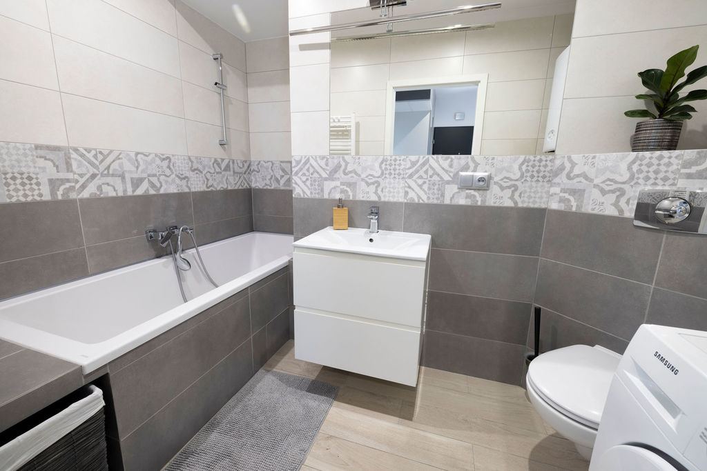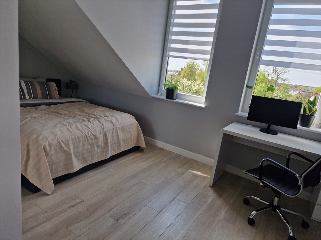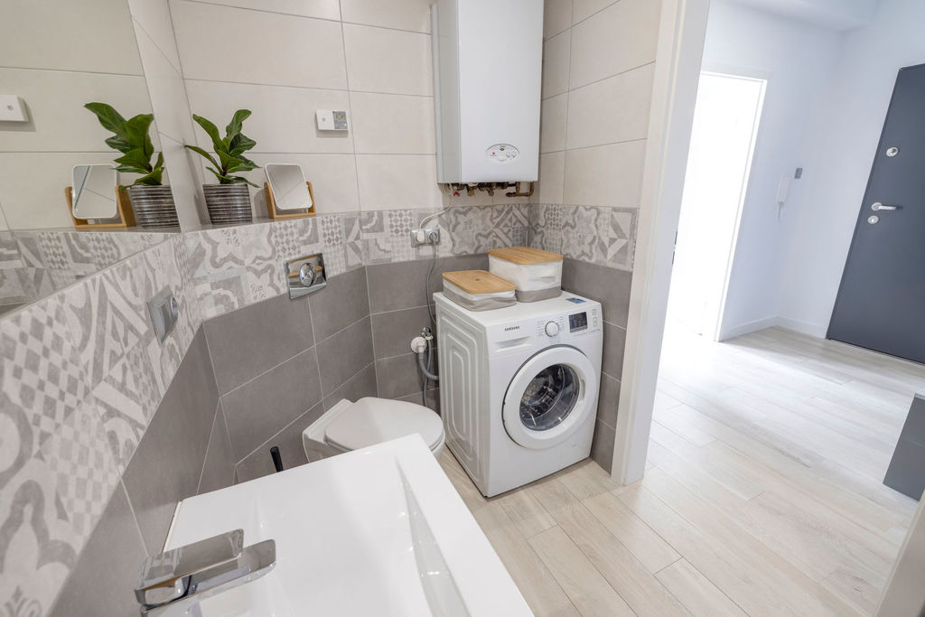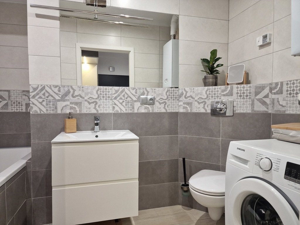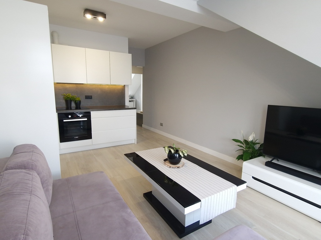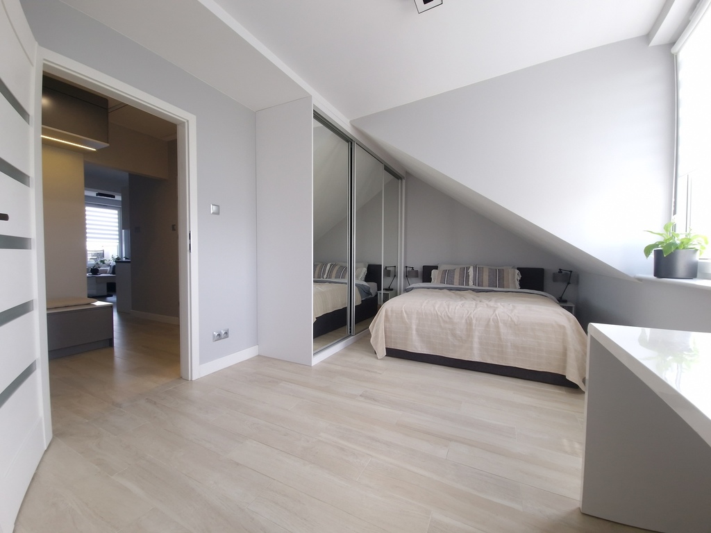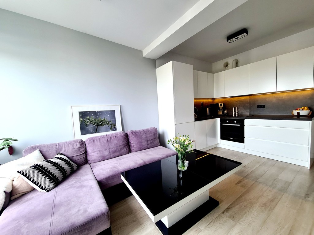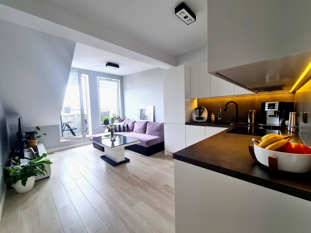A beautiful two-room apartment on the third floor in Warsaw. On the surface of 44 m2 on the floor (39 m2 according to Land and Mortgage Register) there are: a hall, a bedroom, a bathroom and a living room with a balcony and an open kitchen. The entire apartment has a uniform gres floor and underfloor heating from a gas stove. PVC windows across the east and west, from which there is a view of the panorama of Szczecin and Lake Dąbie. The price includes all built-in furniture (wardrobe in the corridor, wardrobe with mirrors in the bedroom, kitchen) and household appliances. Large bathroom with a two-meter bathtub. In the attic, a large storage room of about 8m 2. Access to optical fiber. The lack of neighbors peeking into the windows and the undisturbed space is an additional advantage for people who value privacy. Obligatory parking space in the underground garage 3.6m x 5.1m for PLN 35,000. It is possible to purchase an additional second parking space in the underground garage 2.5 m x 5.1 m for PLN 30,000. Both garages on separate books. An apartment worth seeing. Release date by the end of the year. I invite you to the presentation