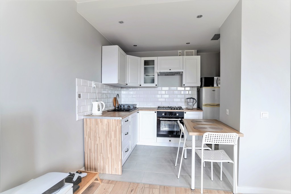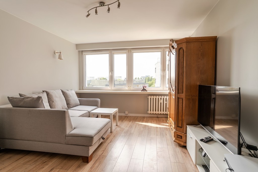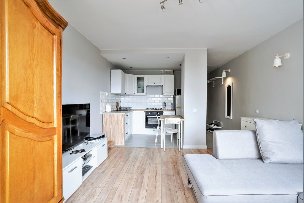 Well-maintained studio apartment with an area of nearly 29 m2, ideal for a single or a couple. It is located on the 6th floor of a high-rise block built in 1971. The apartment is in very good technical condition. A few years ago, it underwent a general renovation, including the replacement of the electrical and hydraulic systems. It does not require any additional financial outlays. Water and central heating from the municipal network. The price of the apartment includes kitchen furniture, a chest of drawers, a fridge and a washing machine.