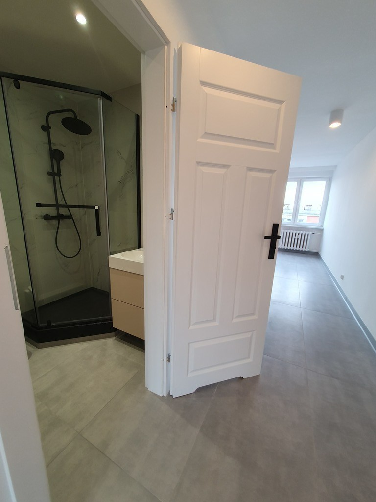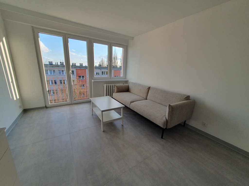 For sale a 3-room flat after a complete renovation in Pomorzany. An apartment on the fourth floor of a low block from the 80s. 48 m2 consists of a living room with a kitchenette, two bedrooms, a bathroom with a toilet and a shower, a hall (a 2-room apartment in 2 sqm). Apartment after major renovation. The windows, external and internal doors have been replaced. All installations – water and sewage, electrical are new, the walls are smoothed and painted, the floors in the rooms are high-class panels. Built-in wardrobe in the bedroom, custom-made furniture in the kitchenette. The bathroom is tiled and terracotta, white fittings and built-in cabinets. Apartment with district heating and hot water from the municipal network. The rent to the cooperative is PLN 350 with advance payments for heating, water and repair fund. The apartment is ideal for a family, as well as an investment for rent. Low maintenance costs. Great location, close to shops, school, kindergarten, playgrounds, public transport stops. Public parking next to the building. I recommend it because of the standard of finish and low operating costs. The apartment is ready to move in.