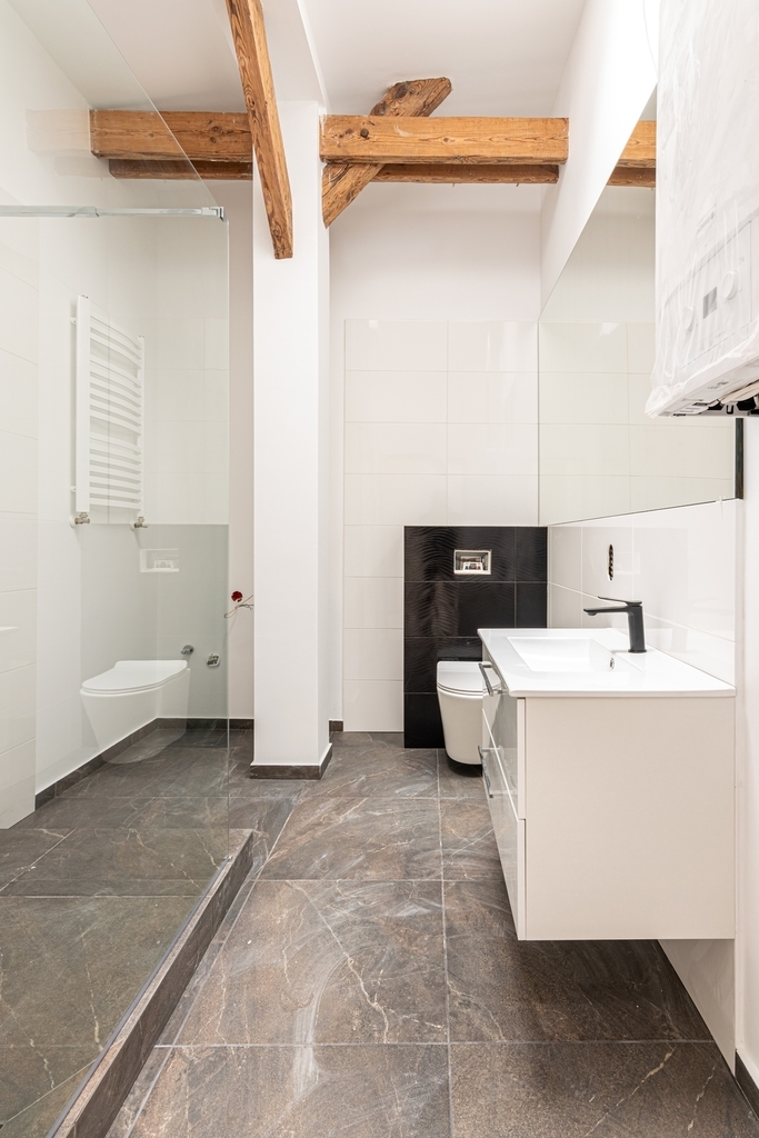 Two-room apartment located in the city center. The attic adaptation offers: – living room with kitchenette 24.49 m2, – bedroom 11.54 m2, – bathroom 6.42 m2, – corridor 3.67 m2. An apartment with one-sided, north-eastern window exposure. Usable area according to design documentation is 46.12 m2 (total 49.59 m2). The premises will be turnkey – without a kitchen. Anti-burglary, fireproof entrance doors. The buyer does not pay 2% PCC tax. Feel free to contact me!