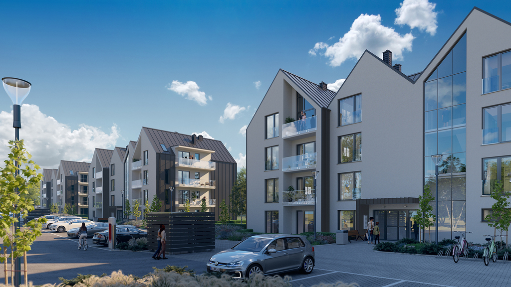 There are storage rooms on the mezzanines (possibility to buy – 4.5 m2 for PLN 39,000 net + 8% Vat and 6.7 m2 for PLN 39,000 net + 8% Vat), and communication is provided by a modern, silent elevator. It is possible to purchase a parking space for PLN 39,000 gross. Vehicle charging stations are planned. Between the buildings there is a large bicycle room, locked and monitored, equipped with a panel with bicycle repair tools.