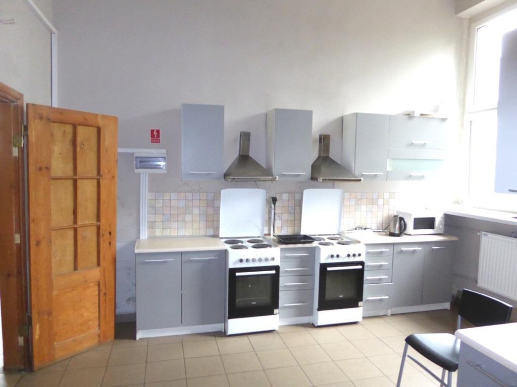For sale a two-story building with an area of total area of 985 m2 located on a plot of the area. 1,430 m2. The facility is adapted to accommodate approx. 100 people. The facility has recently undergone a major renovation – among other things, new plasters have been laid, new floors have been laid in the rooms (except for those in which the original floor woodwork has been left), the facility has been adapted for the short- and long-term rental industry. The main pre-war building, part of the building was added in the 1960s. Installations: water, sewage, central heating from a new gas furnace, electricity 12 kW, three-phase electricity. On the ground floor and first floor on the floor boards, parquet and panels, smoothed walls, bathrooms in new tiles and terracotta. Windows partly wooden, partly new PVC. Door and window woodwork after renovation. The height of the rooms varies – depending on the room, from approx. 2.20 to 3.30 m. On the ground floor (359.53 m2, height 3.1 m) there is a porter's lodge, 6 rooms with an area of from 15 to 30 m2, two WCs, two showers, a conference/gymnasium room with an area of approx. over 100m2 with facilities and a 1-room apartment with a kitchen and a bathroom. On the first floor (370 m2, height 3.1 m) there are 11 rooms, a kitchen, a bathroom and 2 toilets. In the attic (92.08 m2, height 2.78 – 2.2 m) there are 3 large rooms, whitewashed walls, concrete screed / boards on the floor. Cellars (162 m2, height 2.2 – 3.29 m) spacious, dry. The object is sold without the equipment visible in the photos (beds, chairs, stoves, etc.). On the premises there is a business apartment with an area of approx. approx. 80 m2, consisting of 2 rooms, a kitchen with built-in furniture, a bathroom with a bathtub and a corridor. The property is fenced with its own parking lot next to the building and a green area.