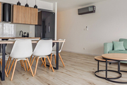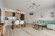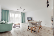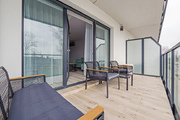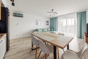 And the property we offer for sale is a very comfortable, modern, fully finished, furnished and equipped, three-room apartment, put into use in 2022. It is located on the first floor of a building equipped with an elevator and the building is located on the banks of the Dziwna River. You can reach the beach by the sea in ten minutes. We used the highest quality materials to finish the apartment. Kitchen furniture was made to measure. I will not talk about the apartment itself here because the rich photo documentation attached to the offer fully reflects the nature of the property. But it looks even better in real life. So please look at the photos and with the eyes of your imagination sit comfortably on one of the armchairs on one of the two balconies belonging to the apartment and breathe the Baltic air. If it turns out that it is too warm on the balcony, you can sit in the air-conditioned living room with your family and friends.