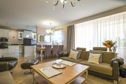 The apartment is divided into a day zone (living room with a terrace, kitchen with pantry, hall) and a sleeping area with a comfortable wardrobe and bathrooms. In the living area, in the bathrooms and in the laundry room, underfloor heating was distributed, in the bedrooms and in the dressing room, radiators were installed.