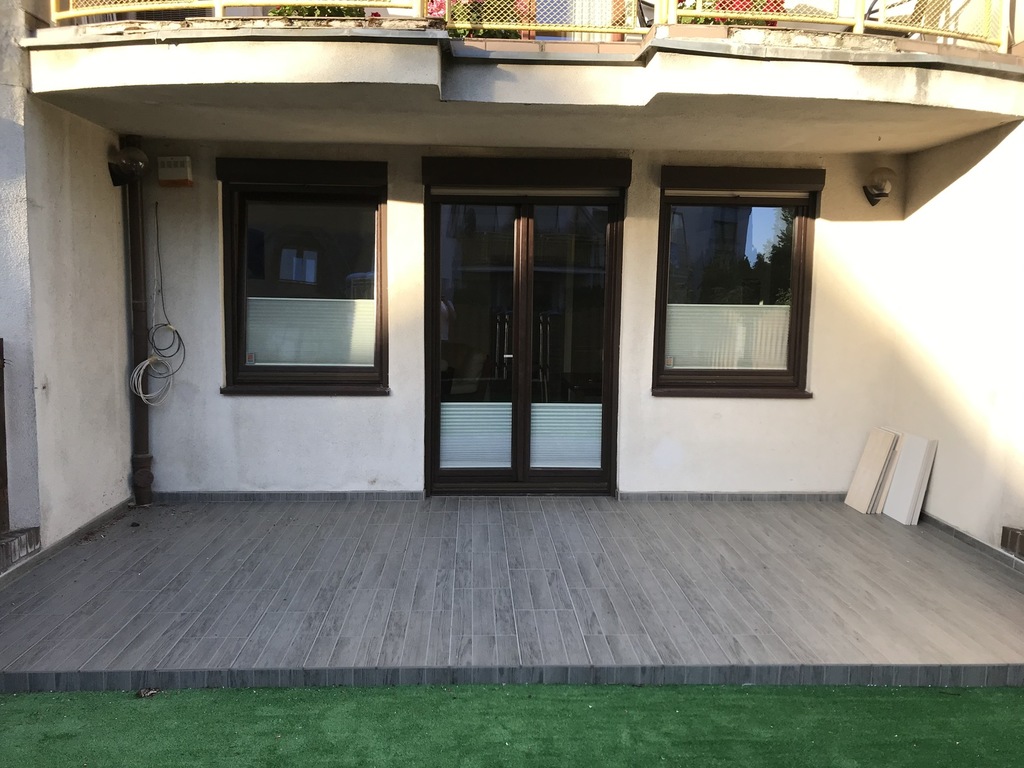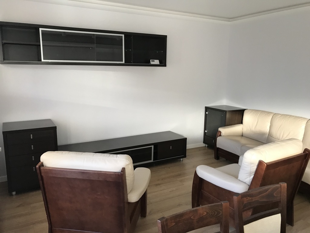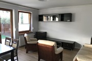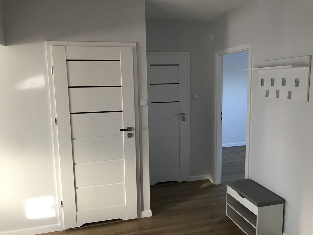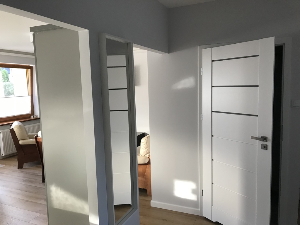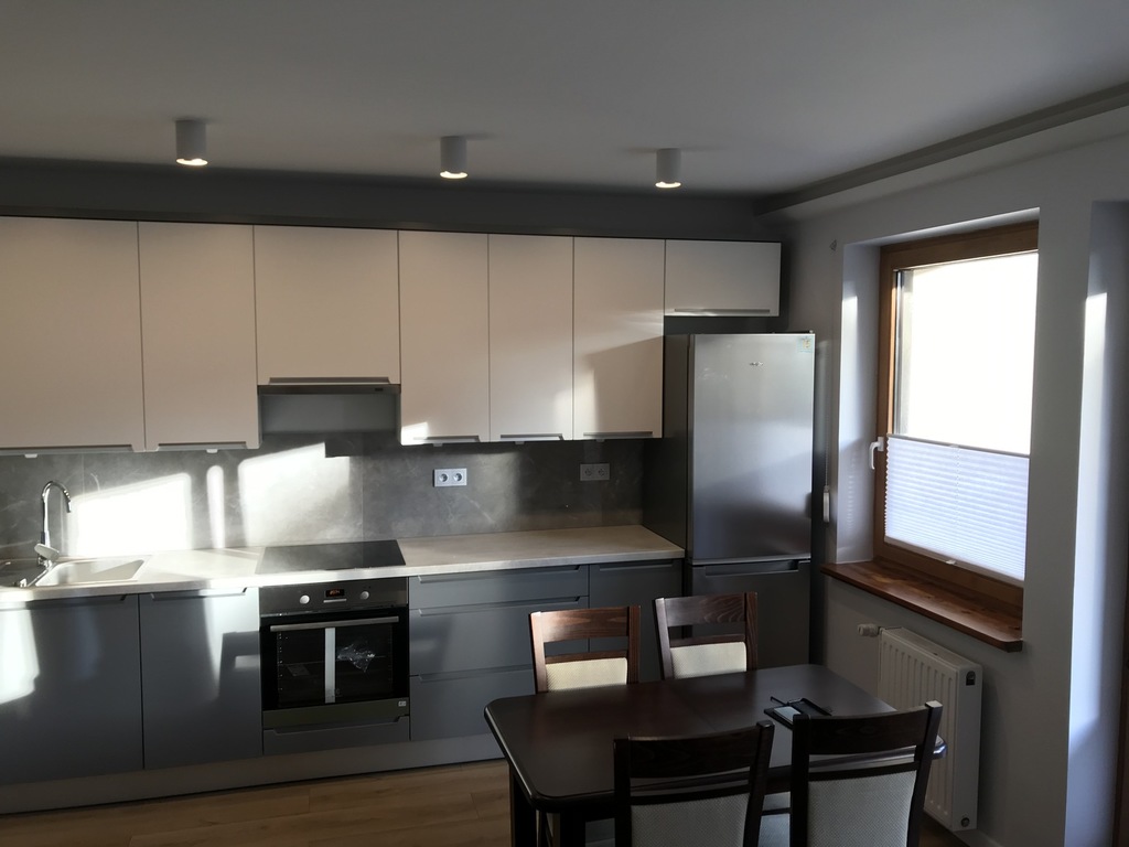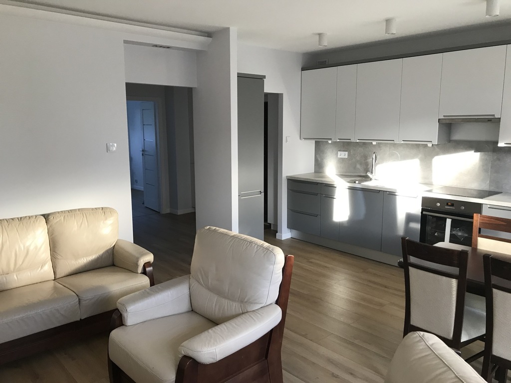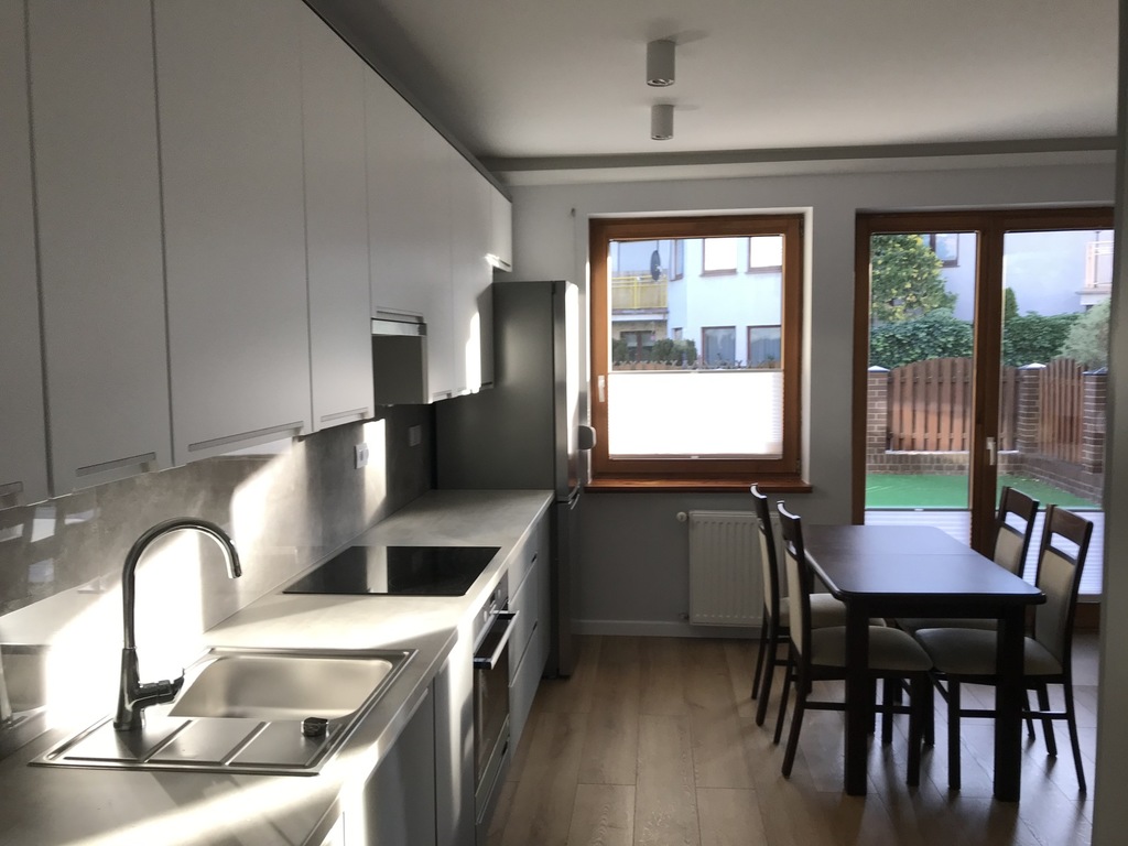 We present a 3-room apartment in a building from 2000. The apartment has been completely renovated and consists of two bedrooms (one with a wardrobe), a living room with a kitchenette, from which there is an exit to a terrace with a small garden, a separate toilet and a bathroom. Currently, there is no furniture in the living room, black furniture that is in the picture may be inserted. The kitchen is fully furnished and equipped (dishwasher, oven, fridge with freezer). The hall is spacious with two wardrobes, a seat. In addition, the apartment includes a parking space in the underground garage – included in the price of renting the apartment. Heating and hot water – gas (gas fees PLN 120.00 in the summer, PLN 400.00 in the winter) Longer lease preferred.
