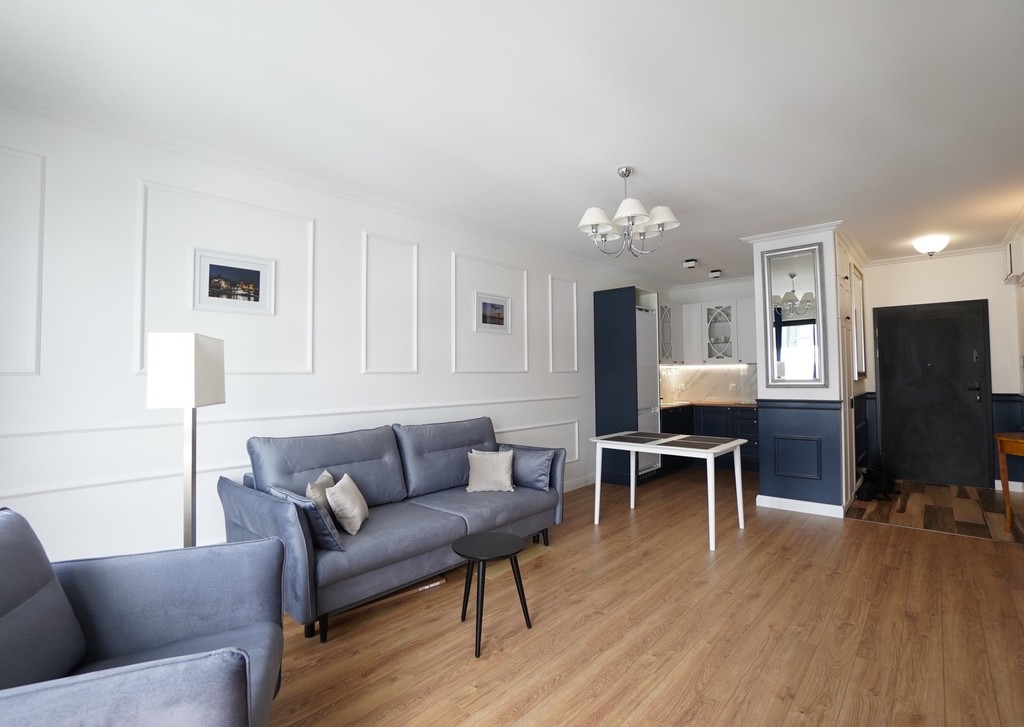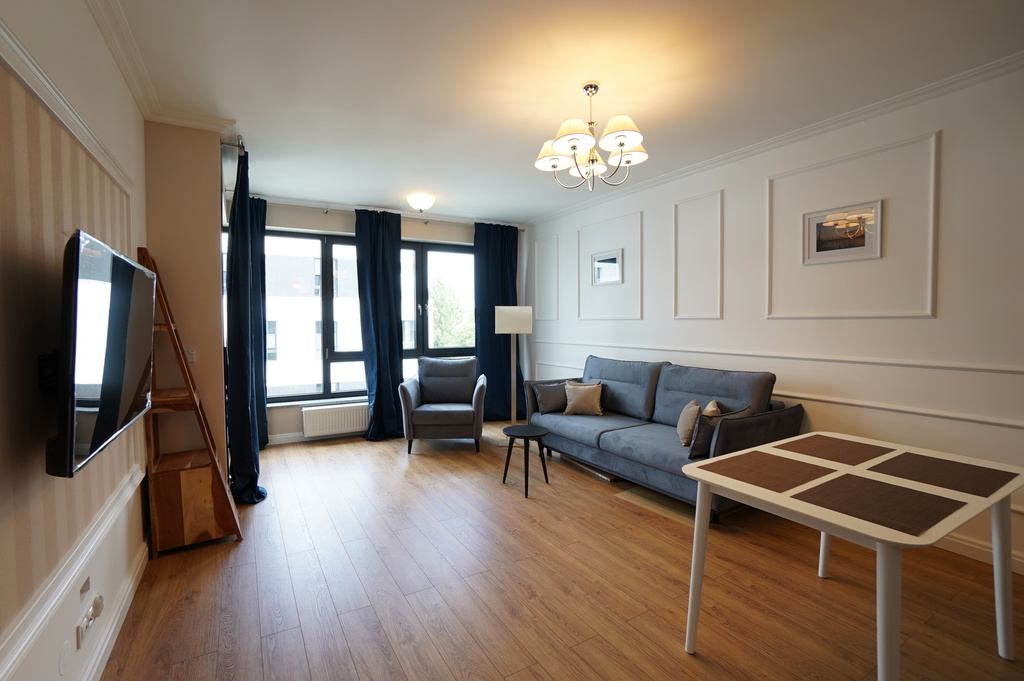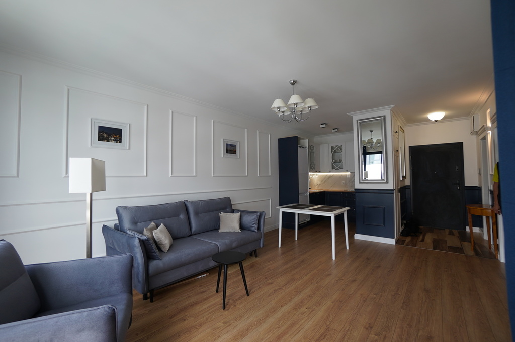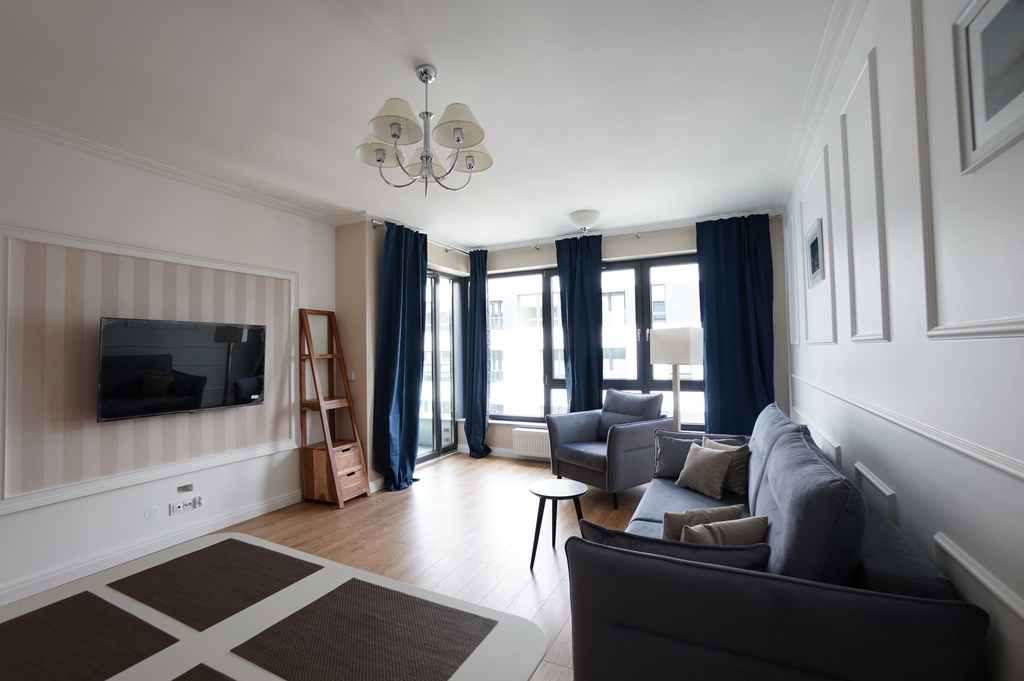 A 2-room property for rent in a newly built building. A high standard apartment consisting of a living room with kitchenette, bedroom, bathroom, hall and balcony. The apartment is furnished, equipped with a set of pots, cutlery, breakfast and coffee tableware. In the living room there are 4 chairs, an oak coffee table, an oak TV table. In the kitchen, a navy blue plate will appear on the fridge. The property includes a parking space. Costs: rent: PLN 2,800 + administrative rent: PLN 600 + deposit. I cordially invite you to contact me!