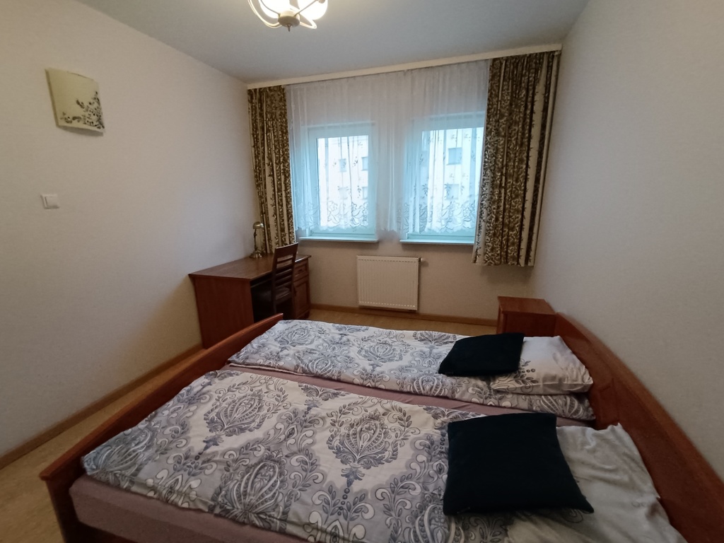 An apartment in the strict but quiet city center near Brama Portowa. From the large balcony, a view of a small park, in front of the building, rotating parking spaces – parking zone. Cozy apartment, fully furnished and equipped. District heating and hot water. Rent PLN 1,500.00 + advance payment for the community PLN 923.12 + electricity, internet. Deposit PLN 2,500.00 Parking space in the underground garage – PLN 400.00 Preferred rental for PUM students, occasional rental, foreigners – to be agreed