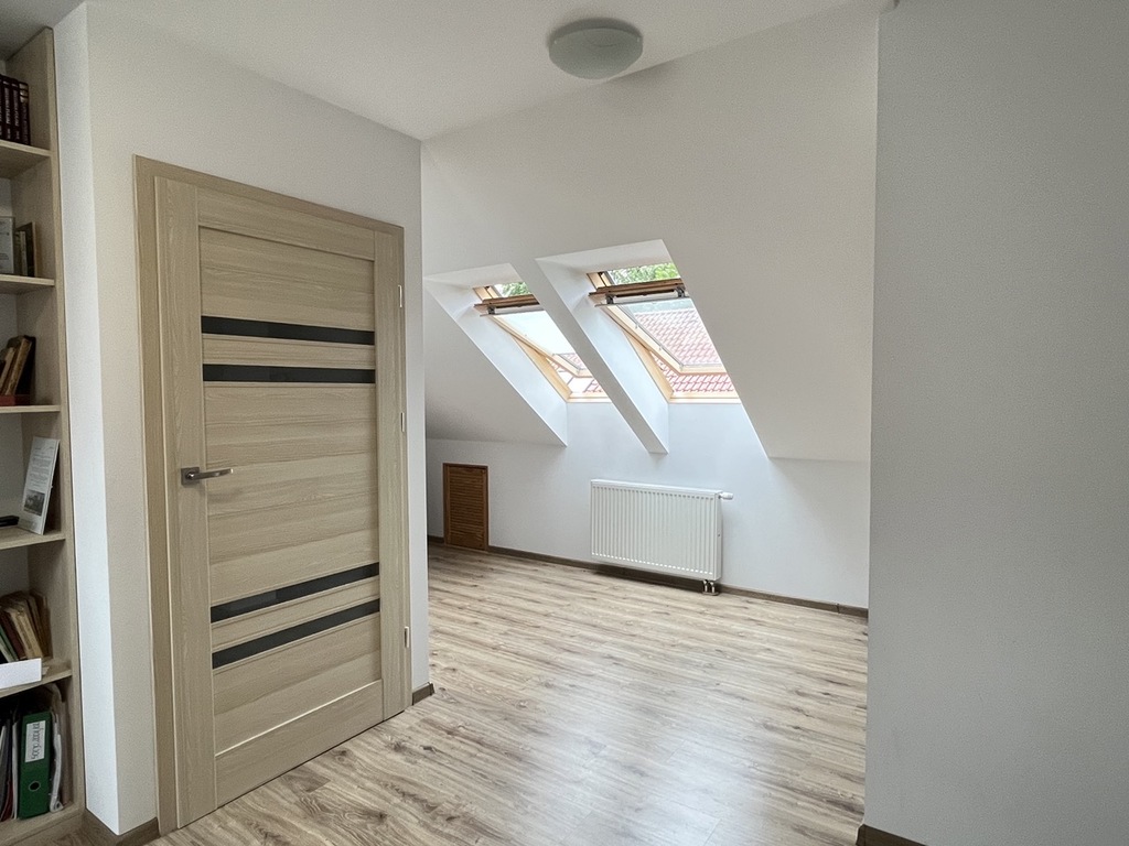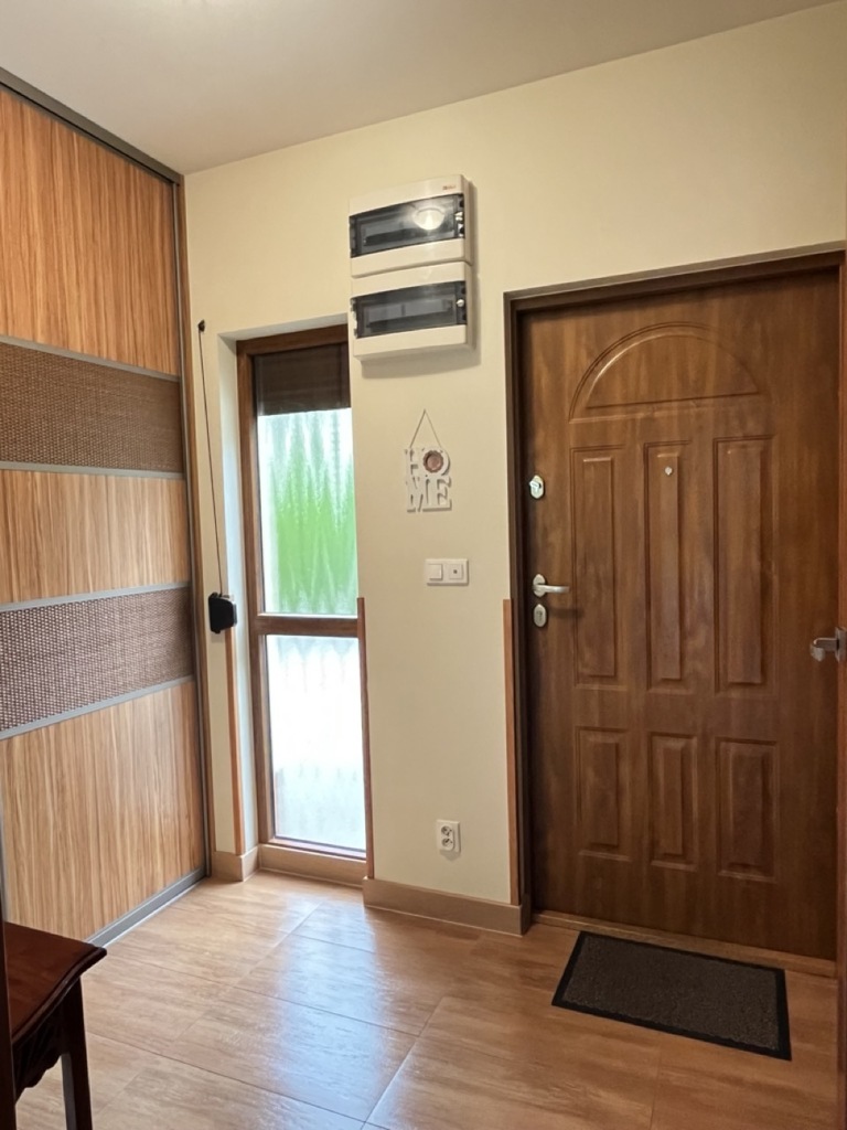. An attractive terraced house located in a gated community in a quiet and peaceful part of Police, built in 2010, expanded clay concrete was used to build the house. The area of the house consists of: GROUND FLOOR: – vestibule with a large built-in wardrobe, living room with open kitchen with dining room, bathroom with shower and toilet with new tiles and terracotta, garage. From the living room there is an exit to a nicely landscaped garden with a terrace with access to the garage. The garden area is 133.3 m2. Comfortable oak stairs lead to the first floor and the attic. On this level there are: a spacious bedroom with a wardrobe with access to a large balcony, another bedroom, a very spacious, renovated bathroom with a toilet and a bathtub, a utility room for a laundry room; ATTIC: On this level there is an open space serving as another bedroom or a place to work and relax. In addition to heating from a two-circuit gas furnace, the house can be heated with a fireplace in the living room. The property is ready to move in. Permanent structures are included in the price. The property is accessed by a garage door that opens with a remote control. The house is insulated. The area in front of the building is landscaped, with paving stones throughout the entire estate. The price of PLN 997,000 includes a garage. Close to bus stops, shops, schools, and the surrounding forest. About 25 minutes to Szczecin by car. An offer worth recommending, for families with children! I cordially invite you to the presentation.