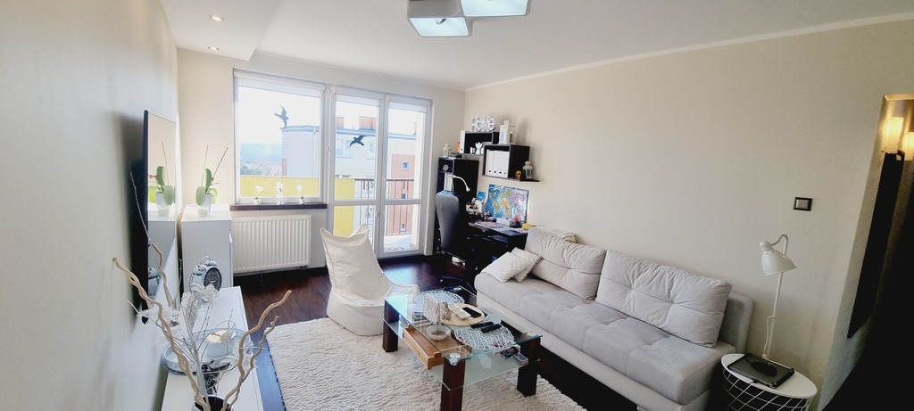 For sale furnished, warm and sunny two-room apartment with an area of over 46 m2 located in the Drzetowo district. Premises with a favorable layout of rooms, finished to a good standard with the possibility of leaving most of the furniture and equipment included in the price. The apartment is located on the fourth floor of a low, insulated building, full ownership. On the above the area of the premises consists of: – a living room of approx. 17 m2 with access to a sunny balcony on the south side, – a bedroom of approx. 13 m2, with a large built-in wardrobe, bed and furniture, – a bright kitchen equipped with furniture and household appliances (including oven, dishwasher, fridge, microwave), – bathroom with shower and washing machine, – corridor with useful lockers and cabinets. There are panels in the rooms and the hall, tiles in the kitchen and bathroom, the walls are painted in eye-pleasing colors, soundproof PVC windows with good sound insulation. Heating and hot water from the city network, the rent is about PLN 700 and includes administration costs, advance payments for water consumption and heating, repair fund and garbage collection. The owner also uses the basement room. LG air conditioning (cooling and heating function) has also been installed in the apartment. Developed infrastructure, green and peaceful surroundings and good access to public transport. Shops, a pharmacy, a playground and the Brodowski pond in the vicinity. The apartment is ideal for singles, couples and small families. We recommend and invite you to the presentations. Date of delivery of the premises to be agreed with the current owner.