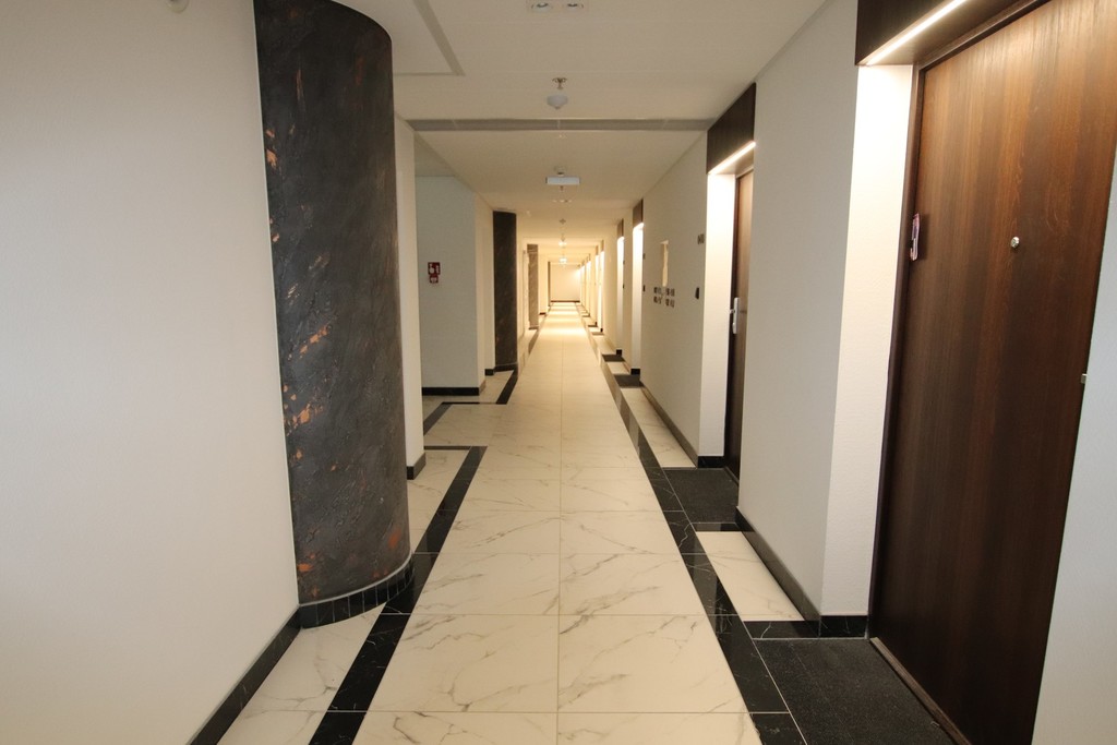 The apartment with the exhibition to the west has a loggia, which is an additional space for relaxation. Hanza Tower is a complex of exclusive apartments, offices and commercial spaces, offering all amenities such as a reception, a swimming pool with a set of saunas, an observation deck on the 27th floor and much more.