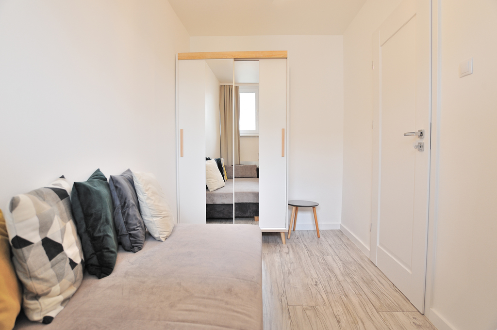 Room for a person from 19 years of age. The offer applies to a single room in a 3-room apartment at al. liberations. The apartment is after general renovation, all furniture and household appliances are new. The apartment consists of 3 independent rooms, a corridor, a kitchen, a bathroom with a toilet. The room has a fold-out sofa, a desk with a lamp and a chair, a stool and a wardrobe. The kitchen is equipped with kitchen furniture, a fold-out table, household appliances (gas cooker with electric oven and hood, electric kettle, large fridge-freezer). The bathroom has a shower, toilet, washbasin with a cabinet and a mirror, a washing machine, and capacious shelves above it. Perfect location. The apartment is located in the immediate vicinity of transport links – there is a tram stop under the block of lines no. 2, 3, 7, 10, 12 and night bus lines no. 522, 523, 525, 530, 532). All this means that tenants will have excellent connections with other districts of the city. There are also numerous public facilities nearby, including a bakery (under the building), hairdresser, bookstore, tailor, bank, gym, MOSRiR, numerous eateries and grocery stores. The room is an excellent proposition for a student of the Faculty of Science and Life Sciences of the University of Szczecin – it is only 4 minutes away on foot. The cost is PLN 800 and PLN 350 advance payment for utilities. Deposit PLN 800 with keys in the office. We invite you to the presentation and to contact us. Feel free to contact me by phone between 9am and 4pm (other times please text me). responsible broker license number: 13072