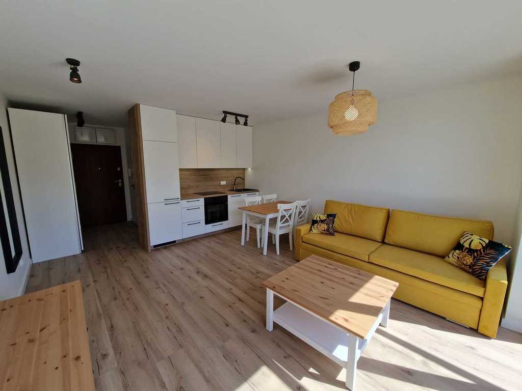 A beautiful studio apartment in Gumieńce – freshly finished and furnished is waiting for its first owner. The apartment is located on the third floor in a brand new block with an elevator. The building is located on a fenced area with an entrance through a barrier and monitoring (investment completed in 2023). The apartment consists of a living room with an area of 20.51 m2 with a kitchenette and a balcony, a bathroom and a corridor. Waterproof panels on the floors, painted walls, PVC windows, security doors. The price includes furniture and equipment of the apartment visible in the photos. The rent is PLN 180 and it consists of a repair fund, garbage and water. Super location, well-connected part of Gumieniec – close to the city center, shopping center, nearby shops, pharmacy, clinic, etc. Obligatory purchase of a parking space in the estate – assigned to the apartment – for an additional fee of PLN 20,000. It’s really worth seeing in person to see the charm of this place! I invite you to the presentation