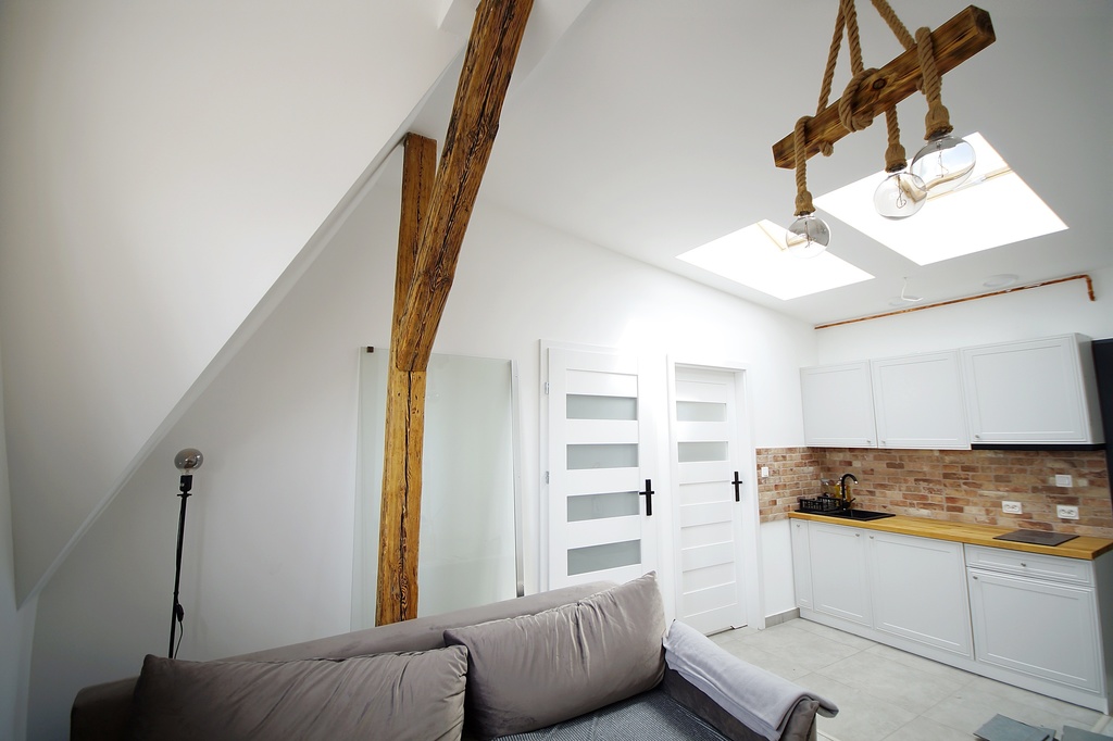 We offer a two-room apartment with a total area of 38 m2, located at ul. Krzywoustego, in the center of Szczecin, close to Kościuszko Square and the Turzyn Shopping Center. The usable area is 31.00 m2. The building dates from the beginning of the 20th century. The staircase in the tenement house was renovated, the roofing was replaced, and the facade was renovated. The apartment consists of a living room with a kitchenette, a bedroom, a large, bright bathroom with a toilet. The bathroom tiles and terracotta, white assembly. Laminate flooring in both rooms. White new interior doors, external anti-burglary, fireproof doors. All new installations (electricity, gas and water and sewage). Light enters the apartment from roof windows and windows in the vertical facade. Combination gas oven, radiators and new heating system. New kitchen furniture. The rent for the administrator together with the repair fund is PLN 150. Climate apartment, bright, sunny. Monthly rent PLN 2,500.00 Additional charges include: electricity, gas, water and garbage. The deposit is twice the rent. Close to public transport stops, numerous shops, schools, universities. Convenient access both by car and public transport to every point of the city. Ready for immediate release and residence!