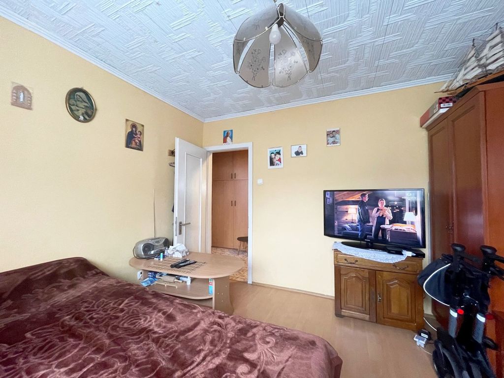 I recommend a 3-room apartment with an area of 53.62 m2 located on the third floor in a four-story insulated building. The apartment consists of three rooms, including one transitional, a kitchen, a bathroom with a toilet and a hall. There are panels on the floors in 2 rooms, cork on the floor in the largest room, wallpapered walls in the rooms, and cork on the walls in the hall. The kitchen is bright and spacious. Bathroom with toilet in tiles and terracotta, with a shower cabin. PVC windows, blinds on the windows. The apartment is very warm and sunny. The cage has been renovated. The apartment is located in a very good communication route, close to a primary school, shops, kindergarten and swimming pool. The apartment includes also a cellar. I invite you to watch. Price is negotiable.