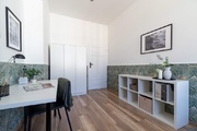 A room for rent in a 5-room apartment in a tenement house in the city center at al. Wojska Polskiego 4. A room equipped with a bed, a wardrobe and a desk. Electric floor heating. Lockable room. Kitchen as a common part equipped with built-in furniture, electric cooker, extractor hood, fridge with freezer. There is a washing machine and a clothes dryer in the apartment. The bathroom is a common area, equipped with a shower, sink and toilet. Price per month PLN 1300 plus PLN 250 monthly utilities. Monthly deposit required. The apartment has been completely renovated, it is located on the 3rd floor, thanks to which it is sunny and quiet despite the location in the city center. There is no elevator in the building. I invite you to the presentation, I will send an advertising video for those interested.