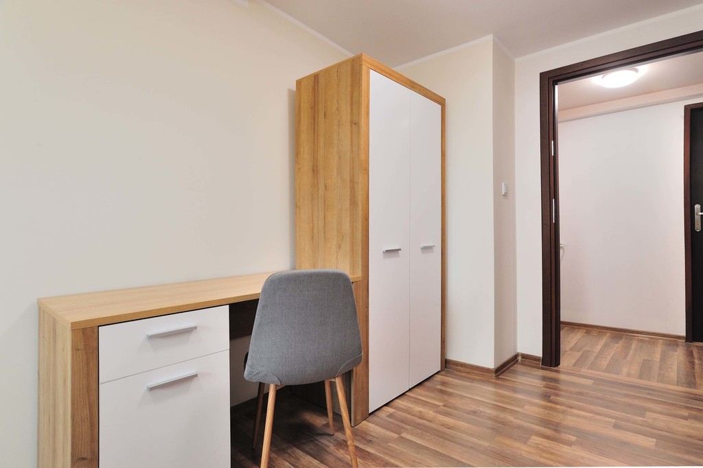 Single room for rent from today. Tenants have at their disposal 2 comfortable, modern bathrooms with a large shower cabin and a bathtub. The bright and functional kitchen is fully furnished and equipped with a hob, two refrigerators, a microwave and a washing machine. The rent is PLN 850 per room. Additional fees are PLN 260/person. advance payments for utilities throughout the year, including gas, electricity, zw, FR. The apartment has 5 independent rooms. The room is intended for students who value peace – the remaining rooms are occupied by medical students. The apartment is modernly furnished, located on the 4th floor of a tenement house at al. Wojska Polskiego, near Galeria Kaskada. Tram and bus stops are nearby. 1-month rent deposit with the option of splitting it into two installments. Please contact me by phone between 9 a.m. and 5 p.m. (during other hours please contact me by text message).
