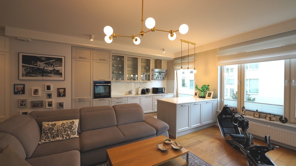 3 rooms for rent in a top location. The property is located in an intimate, closed housing estate from 2017. at the entrance to the amphitheater. Apartment with an area of 69.5 m2 consists of: – a living room with a kitchenette – a room – a bedroom – a bathroom with a toilet – a corridor. The living room has access to a large covered balcony. The property is finished with taste and to a very high standard. Wooden board on the floor. Kitchen furniture made to measure, equipped with household appliances. In the corridor there is a large, capacious built-in wardrobe. Built-in wardrobes in the rooms. Bathroom connected to the toilet. Equipped with a shower, built-in cabinets, toilet, ladder radiator. Rent to the manager in the amount of PLN 680 with advance payments for hot and cold water, heating, FR, waste disposal. It is possible to rent a garage with a gate in the basement together with the apartment, in the amount of PLN 500. The estate is closed, monitored, at the very entrance to Kasprowicz Park. Nearby recreational areas, shops, schools, public transport.