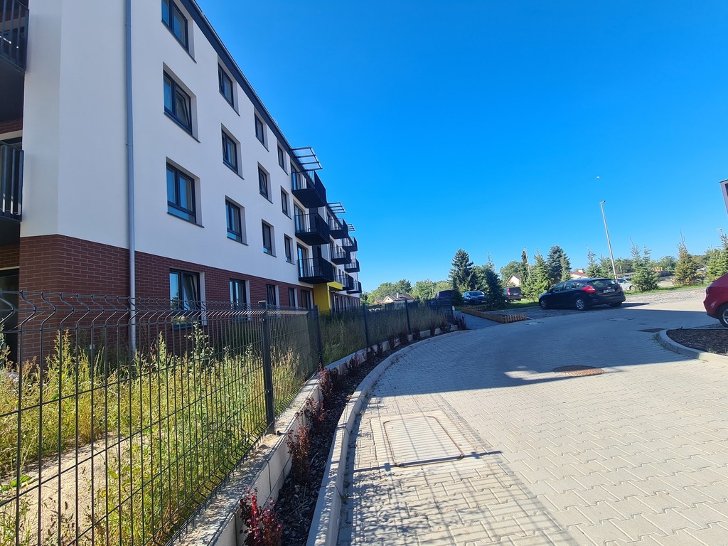 A beautiful three-room apartment in Gumieńce with a large garden. It is located on the ground floor in a brand new block with an elevator – in a fenced area with entry through a barrier and monitoring (investment completed in 2023). The apartment with an area of 60 m2 consists of a living room with a kitchenette and access to a garden of 150 m2, two bedrooms , bathroom and corridor. Fully furnished and equipped. The rent is approximately PLN 350 and includes renovation funds, garbage and water. Great location, well connected part of Gumieniec – close to the city center, shopping center, nearby shops, pharmacy, clinic, etc. Parking space in front of the building included in the apartment rental price. Offer available from October 1. One-month deposit – contract for min. year. When renting with animals – a deposit of PLN 7,000. It's really worth seeing it in person to see the charm of this place! I invite you to the presentation