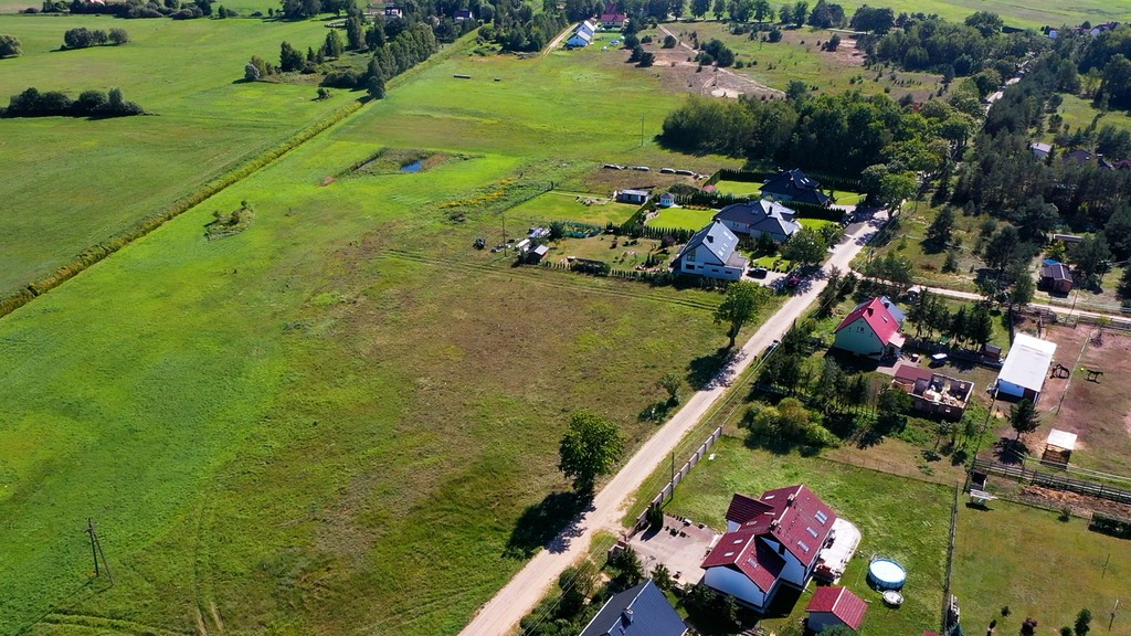The plot has an area of 3,030 m2, is flat and trapezoidal. It is covered with grassy vegetation. There are no buildings on the plots in the immediate vicinity on the north, south and east sides. The plot on the opposite side of the road is built-up.
