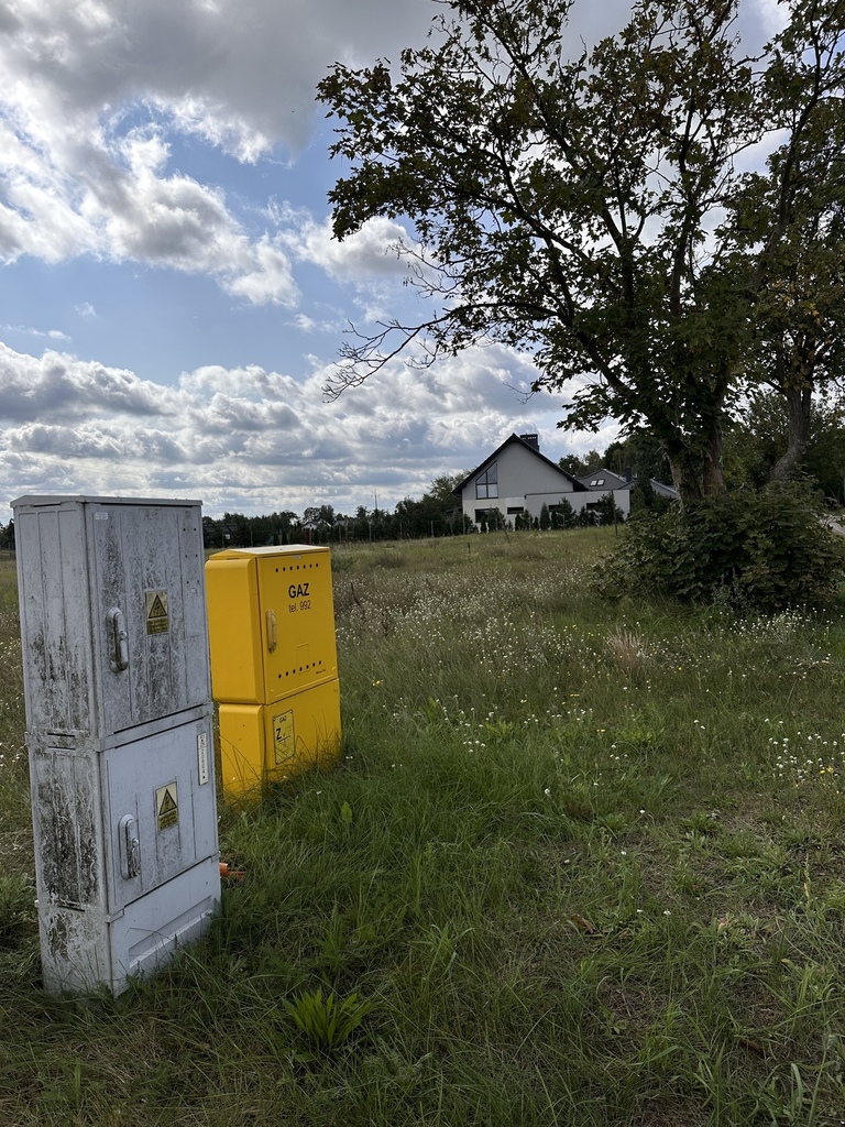 The plot is armed. A cable-measuring joint was made. Electricity and gas on the plot, sanitary sewage system KS200 and telecommunications network on the way, water supply network WOA110 on the other side of the street.