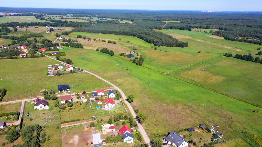 The plot is located 15 km from Szczecin , in the village of Łęgi, in the Dobra (Szczecińska) commune, near the Polish-German border. Access to Szczecin takes about 20 minutes and is possible both by your own transport and by public transport. There is a Bike & Ride stop close to the plot. Next to the stop there is a community center with a playground and a gym.