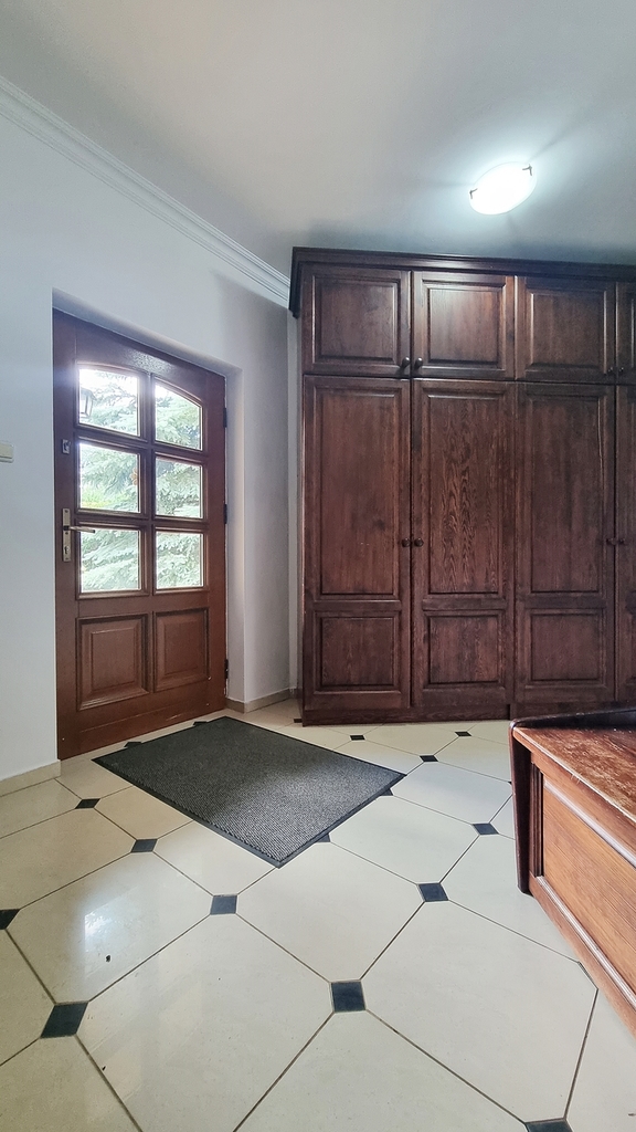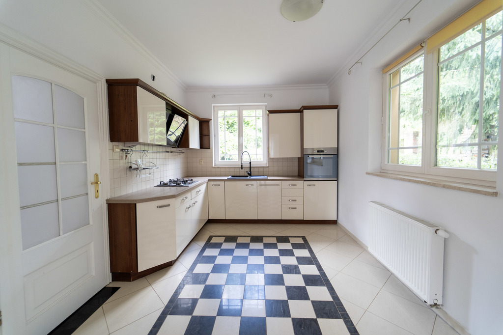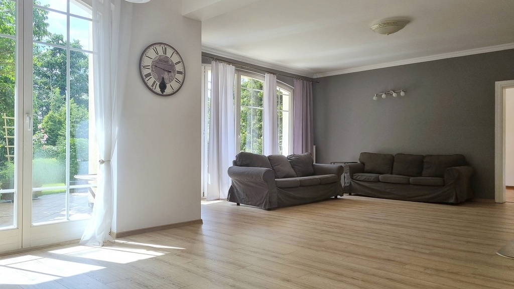 For sale is a detached single-family residential building with a two-car garage in a block of a building from 2005, located on a large plot of 1324 m2, located among greenery, on a quiet street, in Kołbaskowo. The house is equipped with all utilities: electricity, water, gas, sewage system.