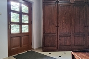Very thoughtful layout of the rooms. The bedroom has beautiful, large windows overlooking the greenery, with access to the balcony. In addition, a wardrobe and a separate part for the office. From the bedroom and the hall, there is an entrance to the huge bathroom / bathing room. Right next to the utility room.