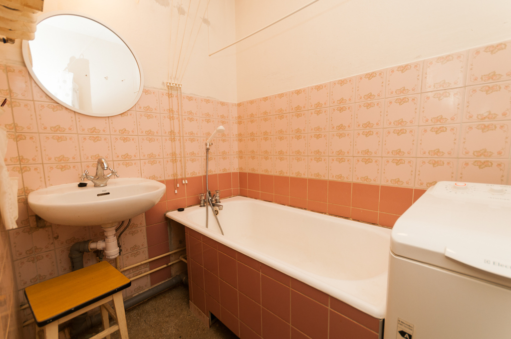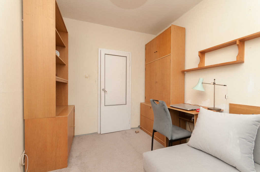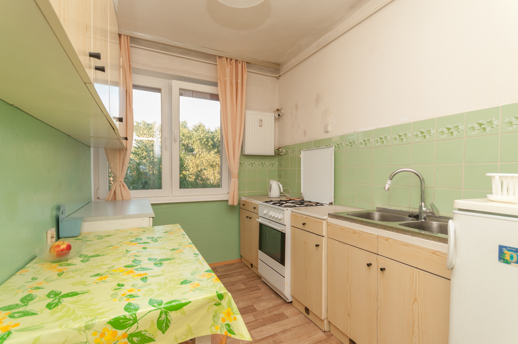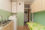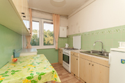 From the larger room there is access to a large loggia balcony. The floors in the apartment are carpeted on PVC tiles. Bright kitchen with window, gas stove.