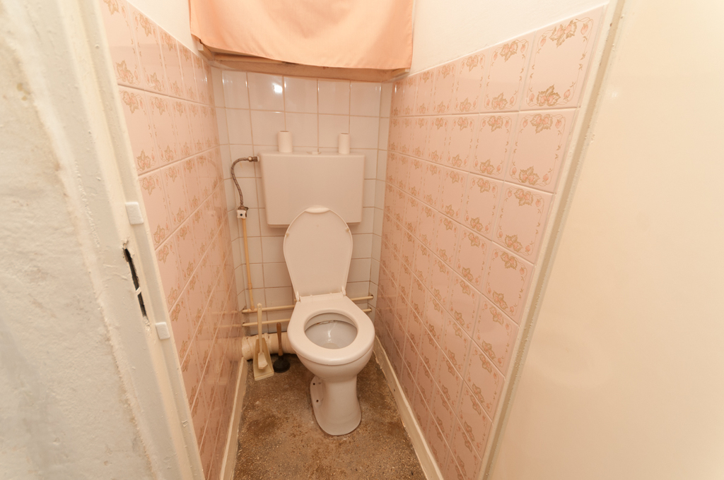 Bathroom and toilet as separate rooms. The bathroom has a bathtub.