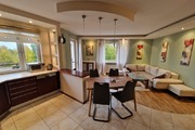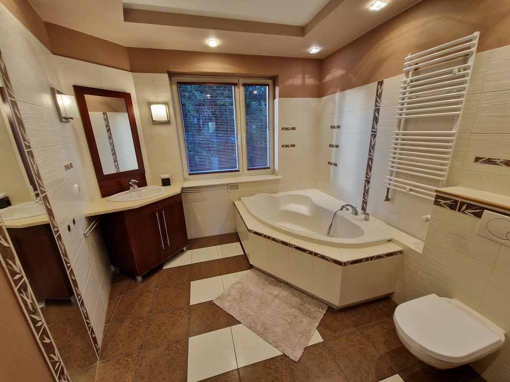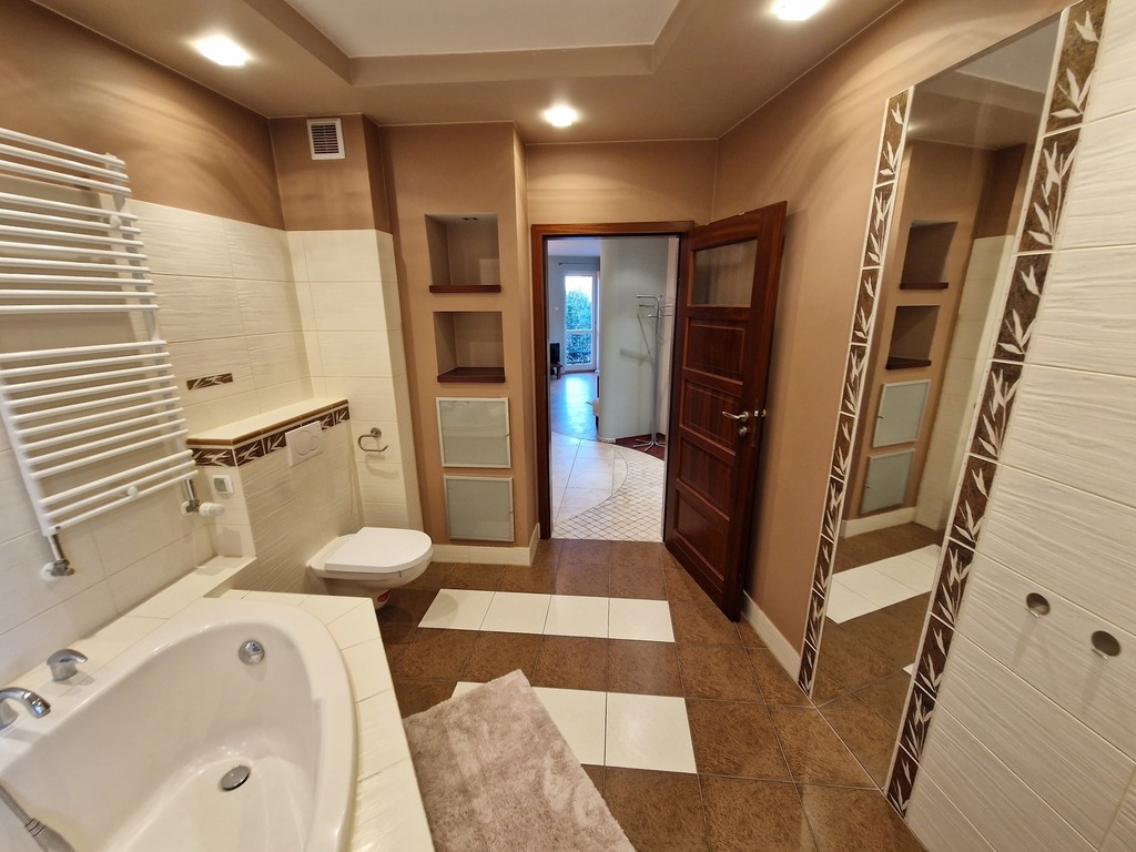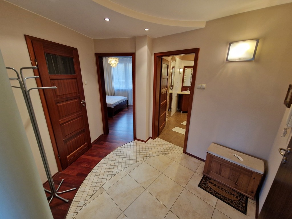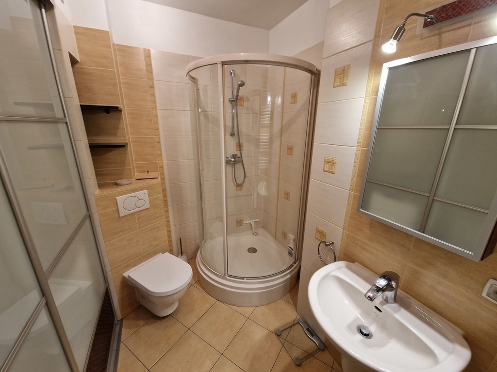 3-room apartment for rent, located on the border of Warsaw and Żelechów. The building was built in 2004 and is made of brick. Fenced area and closed parking for residents only. Lots of greenery in the estate, intimate atmosphere. The apartment is located on the 1st floor and has a beautiful view of the city skyline. The premises consist of: a spacious living room with a balcony and an open kitchen. The living room and kitchen are fully equipped and furnished (dishwasher, oven, fridge, hood). The master bedroom with a large built-in wardrobe (and a second balcony) and the second bedroom (unfurnished) which also has a wardrobe. There are two bathrooms, one with a bathtub and one with a shower. The apartment is refreshed and modernly finished. The rent for the community is PLN 377.44 (advance payments for water and garbage must be added – depending on the number of people), gas and electricity. Gas heating from a modern stove. 2-month deposit (PLN 6,400). Public parking spaces available behind a gate with a remote control for residents. We recommend! No animals. Available immediately.