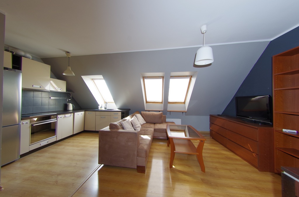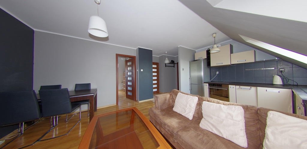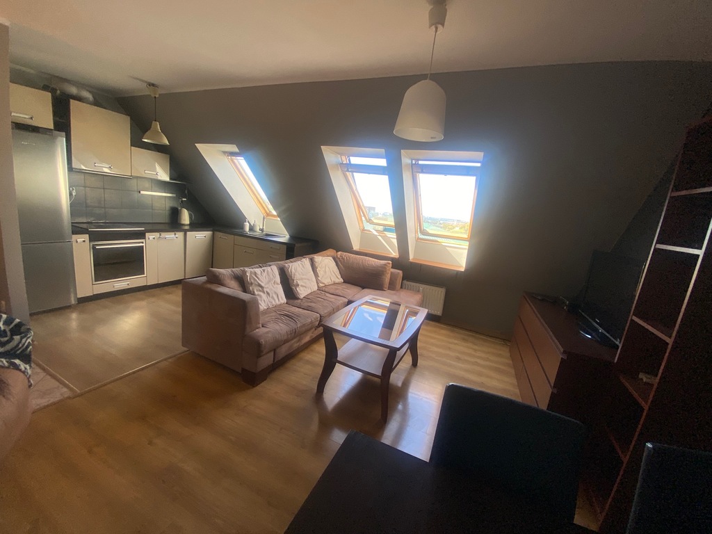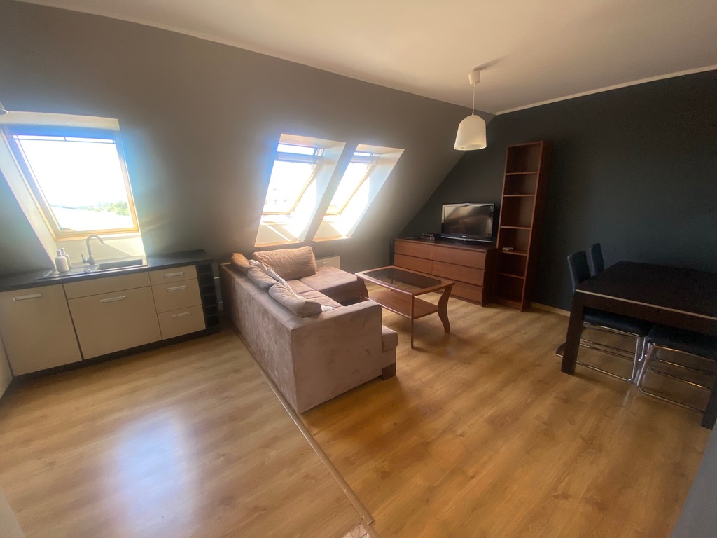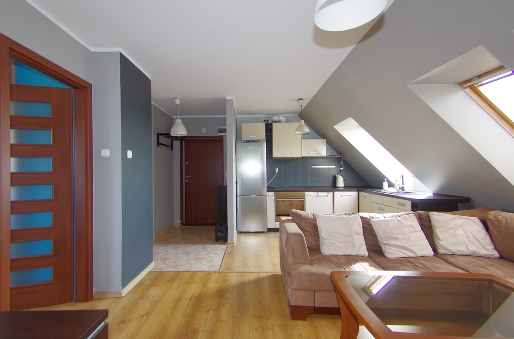 Perfectly located, cozy apartment, with a usable area of 31.7 m2 (floor area approx. 40 m2) + basement, which includes: a kitchen with a window open to the room, a bedroom, a bathroom and a toilet – with a window. There are panels and terracotta on the floors (kitchen and hall), and a bathtub in the bathroom. Kitchen furniture with household appliances included in the price, built-in wardrobe in the hall. Residents have a drying room and a basement at their disposal. The staircase is clean, spacious, public parking spaces available. Keys in the office. We invite .