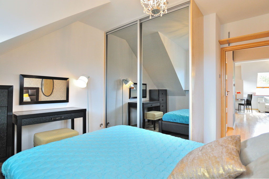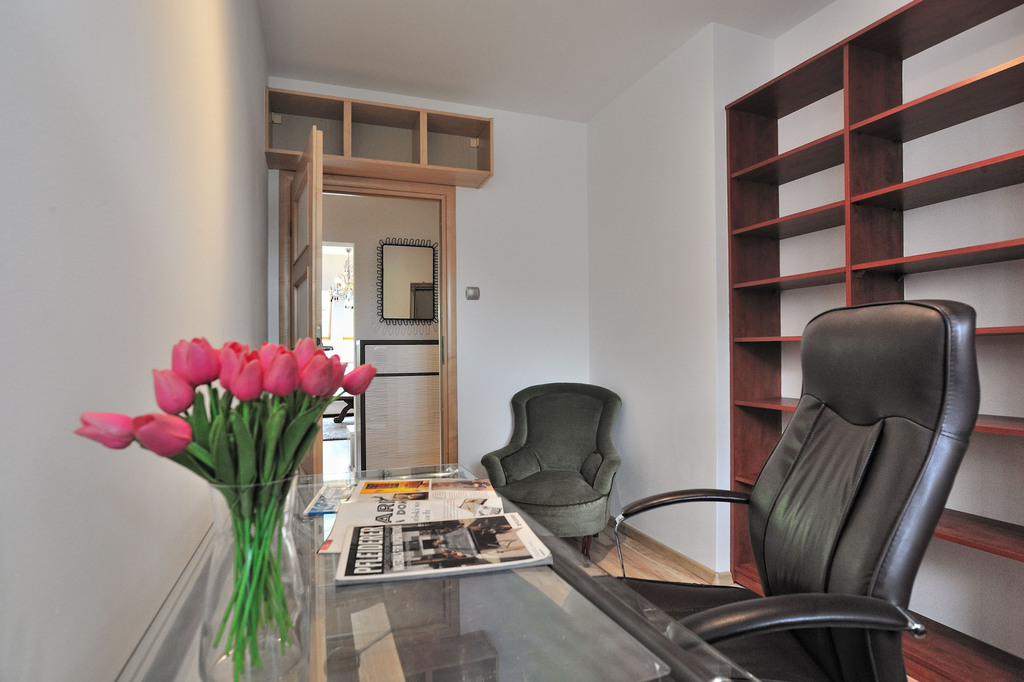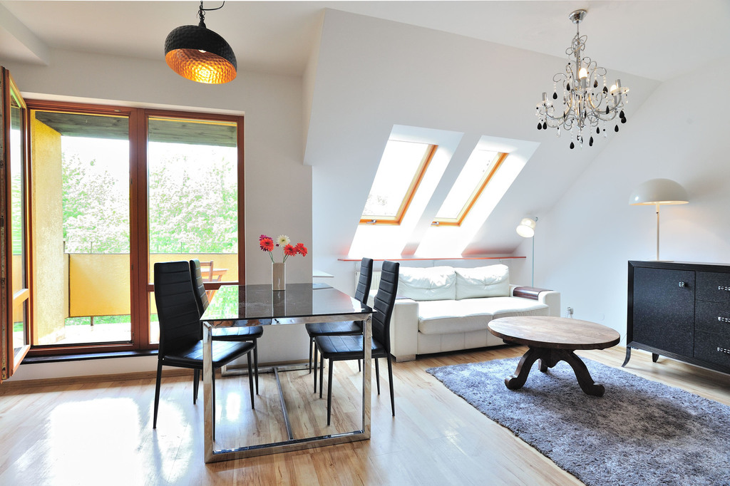 Only here we present you the offer of renting a 3-room apartment located at ul. Henryk Rodakowski in the gated Pod Kasztanami housing estate. APARTMENT DESCRIPTION: An apartment for rent, located in the attic of a second-story building in the guarded Pod Kasztanami Housing Estate. Its total area is 56.68 m2, it is completely furnished and equipped. Heating and hot water from a gas furnace. The apartment has three rooms (including one with a kitchenette), a bathroom with a toilet and a hall. The bathroom is equipped with a bathtub, washbasin, toilet and washing machine. The living room with a kitchenette is furnished with a fold-out sofa, a table and two chests of drawers. The room also has a dining area with a table and four chairs. There is also access to the balcony from here. The kitchen is furnished with kitchen furniture and equipped with household appliances – an induction hob, an electric oven, a fridge with a freezer, a dishwasher, a microwave oven and an electric kettle. The bedroom has a large bed with a comfortable mattress, a large sliding wardrobe, a dressing table and a small shelf. The third room takes the form of an office and is equipped with a desk, an office chair, a large bookcase with shelves and a mini sofa. ENVIRONMENT: Near the presented apartment there are numerous green areas, including Park im. Romana Łyczywka, Botanical Garden or Kasprowicz Park. There are grocery stores, cafes and a gas station nearby. 800 m away there is the Independent Public Clinical Hospital No. 1 at ul. Union of Lublin. There are numerous public transport stops nearby – tram and bus lines (both day and night). All this means that the area has excellent transport connections with other parts of the city. COSTS: In addition to PLN 2,800 of rent, PLN 529.36 of administrative rent plus gas and electricity fees should be added. It is possible to rent a garage for PLN 200/month. I recommend it due to safety (quiet neighborhood, gated community) and large green areas for residents (playgrounds, separate areas for barbecuing and sports). You're welcome, the keys are in the office.