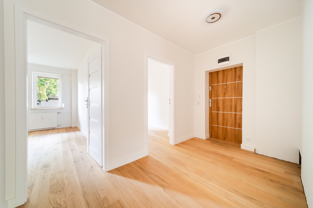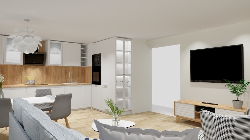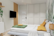 The property is located on the 1st floor of a 5-story building from 1998, the building is insulated, the apartment is very sunny, the windows in the rooms overlook the greenery and are exposed to the east and west. The building has an entrance with a vestibule. The apartment has been thoroughly renovated, walls smoothed and painted, a new bathroom, apart from the equipment, it does not require any financial contribution. Copper electrical installation. The staircase and entrance to the building are in very good condition. Wooden floors in the living room and bedroom, terracotta in the bathroom. Living room and kitchenette on a raised surface, height 222 cm. The apartment requires equipment and does not have a kitchen installed, the last photos show an example of the arrangement.