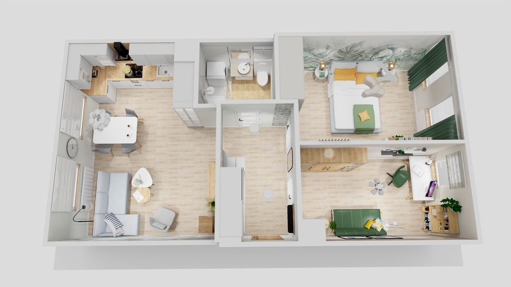 The total usable area of the apartment, i.e. 63.7 m2, consists of: