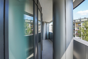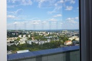 The apartment can be reached via five modern elevators. The apartment is located on the second floor. It consists of three rooms and a bathroom with a total area of almost 53 m2. There is a wall of windows along the entire length of the apartment, with exits from each room to a spacious balcony.