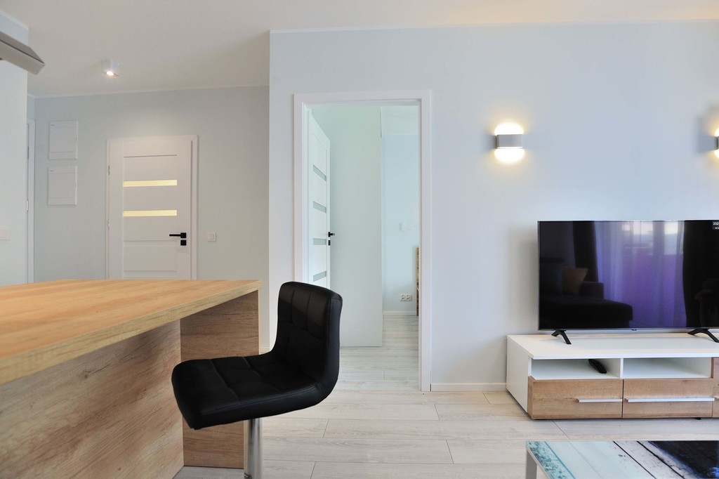 Exclusively here, we present you the offer of renting a 2-room apartment with a balcony located in Przecław. The apartment is completely new, recently put into use. APARTMENT DESCRIPTION: An apartment for rent located on the 3rd floor of a 4-story apartment building from 2020. Its total area is 34.8 m2, it is fully furnished and equipped. The apartment has a living room with a kitchenette, a bedroom, a bathroom with a toilet and a hall. The bathroom is equipped with a bathtub, toilet, washbasin and ladder radiator. The kitchen is furnished and equipped with household appliances – a fridge-freezer, an induction hob, and an electric oven. In the living room, with access to the balcony, there is a fold-out corner sofa, a table and a chest of drawers with a TV on it. The bedroom consists of a bed with a comfortable mattress. NEIGHBORHOOD: There are two care and educational institutions for children in the immediate vicinity (a kindergarten 50 m away, a nursery and a kindergarten 90 m away). It is only 350 m to the primary school and 500 m to the secondary school. There are many commercial and service outlets nearby (grocery stores, pharmacy, parcel locker, post office, hairdresser), a family medicine clinic and a dentistry center. In a short distance (160 m) there is a bus stop of the daily line no. 83, and further (600 m) – a bus stop of the daily line no. 81 and night line no. 523 – this allows for a good connection with Szczecin for non-motorized people. COSTS: In addition to PLN 2,200 of rent, PLN 444.85 of administrative rent and electricity fees should be added according to consumption. It is possible to rent a parking space for PLN 95.01 / month. Deposit required. I invite you to a presentation, keys in the office. Please contact me by phone between 9 a.m. and 5 p.m. (in other hours please contact me by text message).